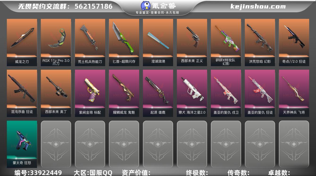 S194745 无畏契约/117等级/黄金段位/29英雄/55皮肤/资产26710/已使用R点725/剩余R点25/混沌序曲-狂徒,洪荒怒焰-幻影,奇点//2.0-狂徒,砰砰X特攻队-幻影,海洋之星//2.0-獠犬,盖亚的复仇-戍卫,盖亚的复仇-狂徒,荒土机兵-热能刀,超限闪存-匕首,澄湖潋滟,RGX-11z-Pro//3.0-爪刀,威龙之刃,天界神兵-飞将,西部未来-奥丁,起源-雄鹿,西部未来-正义,紫阙金琅-标配,耀鳞威龙-鬼魅