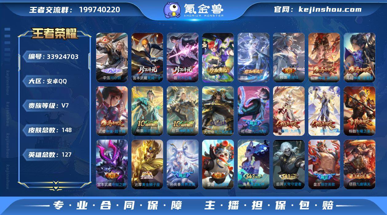 贵族7-贵族积分39001-148皮0典藏15传说1无双4珍品传说-6个全皮英雄 安卓手Q529区148皮0典藏15传说1无双4珍品传说V7 营地ID1620236802至尊星耀I【珍品传说皮肤】:时之奇旅,朽木白哉,黑崎一护,器灵·落星盏【无双皮肤】:问心剑【传说皮肤】:踏浪归,神骥·越千峰,异界灵契,黄金狮子座,神骥·聚万邦,神骥·逐星野,胖达荣荣,神树通天,纵目迁山,地狱之眼,死亡执政官,永曜之星,九山相柳,愿照·九州拓,愿照·山河定【史诗皮肤】:暗隐猎兽者,天穹守望者,猫狗日记,偶像歌手,燃音魔法,撼世英歌,心动手记,幽灵船长,圣诞狂欢,无心,线条小狗,九幽镇关,心灵战警,舞动绿茵,原初追逐者,光弋星穹,千年之狐,巫礼祀神,魅语,万灵启世,冰冠公主,百相守梦,节奏热浪,赞萌露比,魔术师,戍鼓铭心,百相守梦,冰雪圆舞曲,天秀·启明,乘风破浪,水果甜心,鸭鸭历险记,藏狐·褐绒,雪豹·霜爪,龙之律动,鹰眼统帅,化蝶舞,瑰影绮梦,特工魅影,绮世丹青,皇家上将,水晶猎龙者,器灵·浮梦炉,茶境仙,曙光守护者