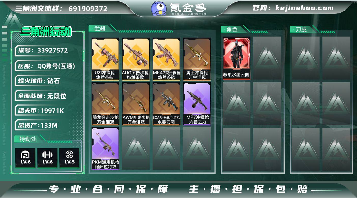 【PTSJZ3604】总资产133M/哈夫币1997万/传说枪皮数7/战场等级1/行动等级60/安全箱等时效性道具以游戏内数据为准,详情请看图/骇爪-水墨云图/近战-黑鹰/AUG突击步枪-悠然茶歇/SCAR-H战斗步枪-水墨云图/腾龙突击步枪-万金泪冠/MK47突击步枪-悠然茶歇/UZI冲锋枪-悠然茶歇/勇士冲锋枪-万金泪冠/AWM狙击步枪-万金泪冠/MP7冲锋枪-六套之力/PKM通用机枪-阿萨拉特攻/QJB201轻机枪-炽焰/K416突击步枪-一帆风顺/SG552突击步枪-贴花艺术/ AK-12突击步枪-马年新春/SCAR-H战斗步枪-荣耀列队/MP5冲锋枪-弄臣/Vector冲锋枪-先锋/UZI冲锋枪-亚特兰蒂斯/SMG-45冲锋枪-行动开启/QJB201轻机枪-哈夫克卫队/Mini-14射手步枪-荣耀列队/SKS射手步枪-弄臣/SV-98狙击步枪-星链科技/SV-98狙击步枪-哈夫克航天/SV-98狙击步枪-精英联盟/QSZ92G-一帆风顺/G18-星链科技/G18-哈夫克航天/勇士冲锋枪-旧工业/M4A1突击步枪-粉色涂装/M4A1突击步枪-高雅黑/QBZ95-1突击步枪-海色/K416突击步枪-几何迷彩/K416突击步枪-高雅黑/M7战斗步枪-黑巧甜心/SG552突击步枪-浅蓝涂装/SG552突击步枪-狂欢/SCAR-H战斗步枪-数码迷彩/AS Val突击步枪-黑巧甜心/MP5冲锋枪-海色/MP5冲锋枪-黄蜂/P90冲锋枪-黑巧甜心/Vector冲锋枪-几何...
