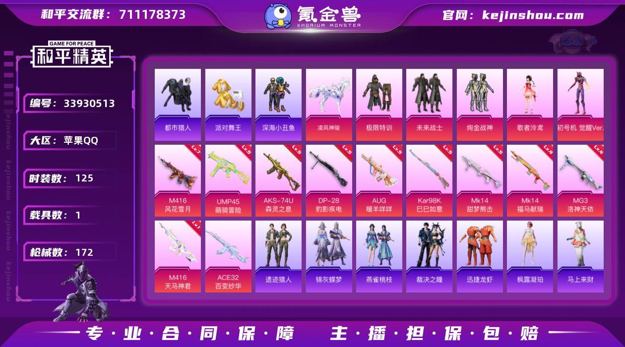 苹果【螳螂号/初号机 觉醒Ver/粉螳螂/蓝螳螂/都市猎人/派对舞王/星河浪客/暗影哥特/5粉装-11特效枪-1载具-3粉色飞行器】 手Q--52973热力值-6王牌印记-125套装-172枪皮 【热门品类】:套装-浪漫天命,套装-都市猎人,套装-派对舞王,套装-深海小丑鱼,套装-金羽特工,套装-星河浪客,套装-暗影哥特,套装-粉红小猪,角色-8号机,角色-Mark.06 【粉色套装】:粉装-极限特训,粉装-未来战士,粉装-绚金战神,角色-歌者泠鸢,角色-初号机 觉醒Ver. 【粉色枪皮等级】:M416-风花雪月(七级),M416-天马神君(一级),AUG-暖羊咩咩(五级),UMP45-萌骑冒险(五级),AKS-74U-森灵之息(五级),Kar98K-巳巳如意(五级),Mk14-甜梦熊击(五级),Mk14-福马献瑞(四级),DP-28-豹影疾电(五级),MG3-洛神天依(四级) 【粉色载具】:凌风神骏 【粉色枪皮】:M416-风花雪月,M416-天马神君,AUG-暖羊咩咩,ACE32-百变纱华,UMP45-萌骑冒险,AKS-74U-森灵之息,Kar98K-巳巳如意,Mk14-甜梦熊击,Mk14-福马献瑞,DP-28-豹影疾电,MG3-洛神天依 【粉色飞行器】:香车宝马飞行器,踏卷乘风飞行器,冰狼掠影飞行器 【粉色降落伞】:极限特训降落伞,未来战士降落伞,激战未来降落伞,星之彼岸降落伞,精灵梦...