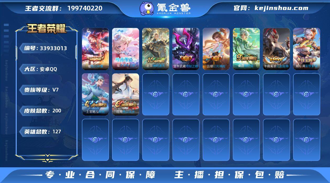 安卓Q 可二次 妹妹号 1典藏1珍品7传说127英雄200皮肤 拾光映像 大耳狗之梦 神树通天 幻光神枪 愿照九州拓 鸣野蒿 时之祈愿女 久胜战神 地狱之眼 涂山容容 百晓客 谪仙醉月 山海玄木吟 蓝屏警告 冰冠公主 暗影游猎 梁祝 苍穹之光 器灵浮梦炉 飞车小橘子 战舞者 燃音魔法 遇见神鹿 暗隐猎兽者 猫狗日记男 猫狗日记女 地狱岩魂 特工魅影 曙光守护者 妄想食味 逐浪之夏 心灵战警 修罗 千年之狐 紫霞仙子 功夫厨神 圣诞恋歌 幽灵船长 乘风破浪 永昼 节奏热浪 天才门将 绅士熊喵 街头霸王 摇滚巨星 缤纷独角兽 鬼剑武藏 德古拉伯爵 冰雪圆舞曲 群星魔术团程咬金 未来纪元赵云 拳王 沙漠行僧 金庭之子 敏锐之力 皇家上将 魅力维加斯 探海日志 水果甜心 古海寻踪 蔬乡物语鲁班 天穹祈灯 高山流水 江河有灵 顽岩魄 纤云弄巧 夏日便利店蔡文姬 乱世虎臣 鹰眼统帅 魔术师 王者荣耀账号