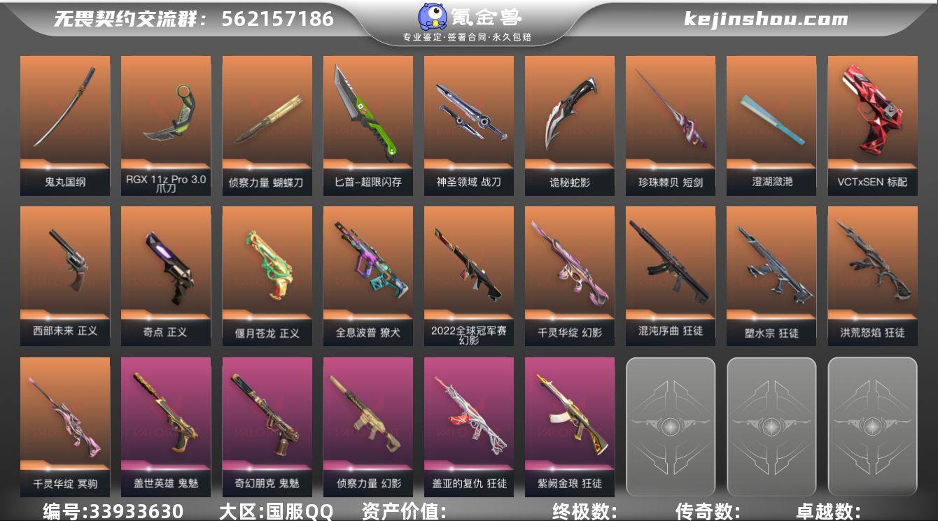 段位: 黄金 亮点皮肤: 幻影-2022全球冠军赛 近战武器皮肤: 澄湖潋滟,蝴蝶刀-侦察力量,短剑-珍珠棘贝,爪刀-RGX 11z Pro 3.0,匕首-超限闪存,鬼丸国纲-般若假面//2.0,神圣领域 战刀,诡秘蛇影 步枪皮肤: 狂徒-紫阙金琅,狂徒-盖亚的复仇,幻影-侦察力量,獠犬-全息波普,狂徒-塑水宗,狂徒-洪荒怒焰,幻影-千灵华绽,狂徒-混沌序曲 佩枪皮肤: 正义-奇点,正义-偃月苍龙,鬼魅-盖世英雄,标配-VCTxSEN,鬼魅-奇幻朋克,正义-西部未来 狙击枪皮肤: 冥驹-千灵华绽