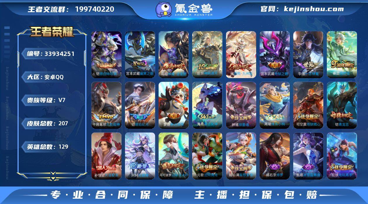 W16158,,可立即换绑无需挂单养号,,铭文满级,,典藏1,,传说9,,,星传说1,,,按键2,,夺宝9,,安卓Q-V7-至尊星耀IV段位-129英雄-207皮肤-1典藏皮肤-9传说-60史诗 【英雄全皮】:孙权全皮,敖隐全皮 【荣耀典藏】:铠银白咏叹调 【传说皮肤】:马超神骥逐星野,后羿神树通天,澜愿照九州拓,桑启鸣野蒿,铠琥珀纪元,李信一念神魔,干将莫邪久胜战神,梦奇胖达荣荣,宫本武藏地狱之眼 【限定皮肤】:姜子牙天穹之誓,狄仁杰阴阳师,赵云皇家上将,白起夜都怪侠,元歌云间偶戏,元歌无心,马可波罗山海玄木吟,狄仁杰魔术师,狄仁杰万华元夜,达摩星际陆战队,达摩沙漠行僧,项羽海滩派对,老夫子醍醐杖,程咬金演武夺筹,王昭君午后时光,兰陵王金庭之子,亚瑟潮玩骑士王,孙悟空大圣娶亲,李元芳云中旅人,钟馗驱傩正仪,干将莫邪胡桃夹子,雅典娜单词大作战,鬼谷子原初探秘者,鬼谷子五谷丰年,铠青龙志,苏烈千军破阵,梦奇顽趣,沈梦溪大漠名商,明世隐吟游魔法,裴擒虎李小龙,裴擒虎擒涛扼浪,狂铁电玩高手,米莱狄胡桃异想国,云中君纤云弄巧,上官婉儿梁祝,西施玲珑珍味,蒙犽狂想玩偶喵,鲁班大师探海日志,桑启海盐诗旅,戈娅驭风魔法,艾琳流音漫舞,...