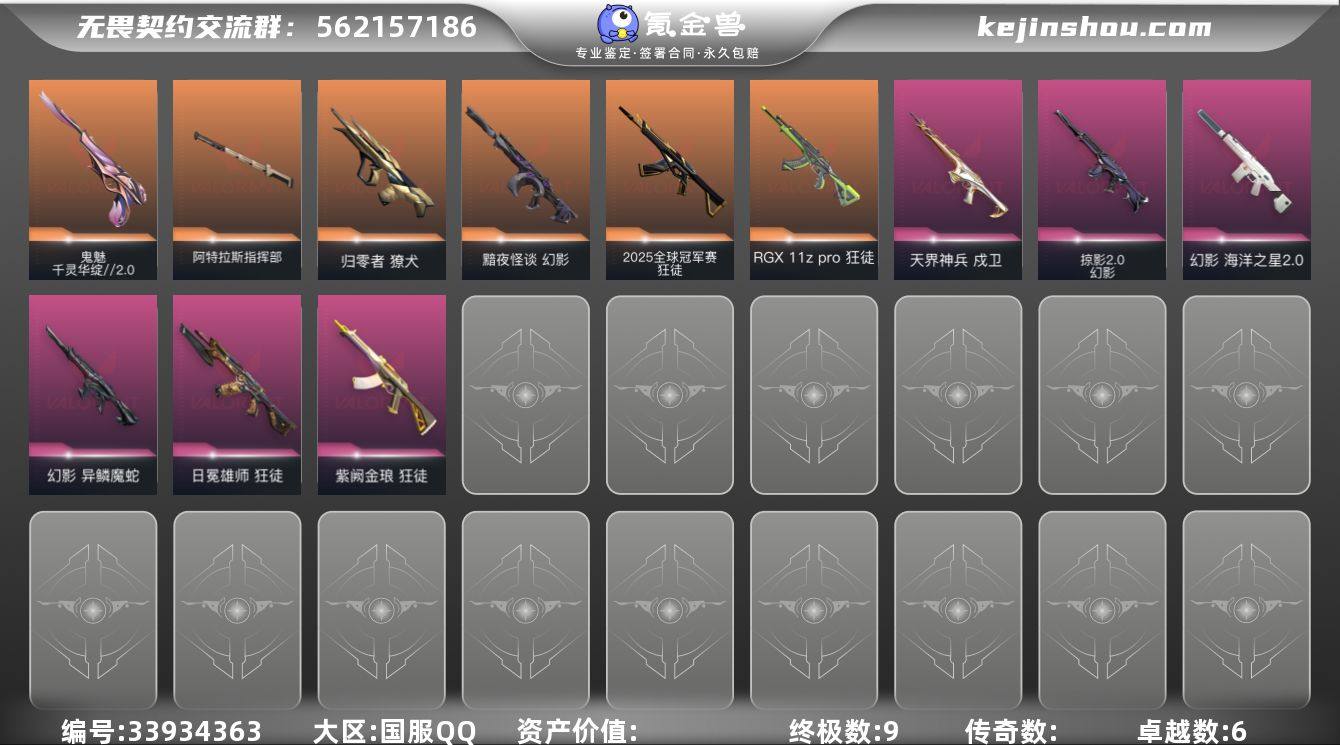 【编号76399 可秒换绑】【店长推荐!极品精氪号!RGX 11z Pro 狂徒 黯夜怪谈幻影 影钩 紫阙金琅狂徒 日冕雄师 狂徒!!!】 【英雄】:幻棱,炼狱,暮蝶,钛狐,壹决,铁臂,捷风,幽影,不死鸟,贤者,猎枭,芮娜,奇乐,尚勃勒,霓虹,斯凯,夜露,盖可,黑梦,钢锁 【近战武器】:近战武器-蒙太奇 战斧,近战武器-碎心裂刃,近战武器-影钩,近战武器-阿特拉斯指挥部 甩棍 【狂徒】:狂徒-2025全球冠军赛,狂徒-RGX 11z Pro,狂徒-日冕雄师,狂徒-紫阙金琅 【幻影】:幻影-黯夜怪谈,幻影-异鳞魔蛇,幻影-海洋之星//2.0,幻影-掠影//2.0,幻影-蒙太奇 【戍卫】:戍卫-天界神兵 【獠犬】:獠犬-归零者 【战神】:战神-蒙太奇 【骇灵】:骇灵-无限竞技,骇灵-蒙太奇 【鬼魅】:鬼魅-千灵华绽//2.0,鬼魅-扑棱扑棱 【狂怒】:狂怒-蒙太奇 【卡面】:无畏契约:暮蝶 卡面,热舞环节 卡面,超限闪存 卡面,树懒大作战 卡面,暂别喧嚣 卡面,无畏契约GO!第一卷:芮娜 卡面,无畏契约GO!第一卷:零 卡面,钢锁vs盖可 卡面,别冒尖 卡面,代号红色 卡面,新兵报到 卡面,V契约 卡面,无畏契约 卡面 【喷漆】:伤心心 喷漆,五人成星 喷漆,皮蛋萌舞 喷漆,买装还是存钱 喷漆...