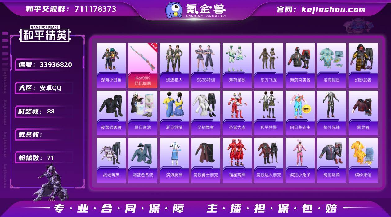 "HX1741 无二次 安卓Q-段位王牌 60级 5印记 88套装71枪皮 【1特效枪】 Kar98K-巳巳如意 2级 【热门】 深海小丑鱼 小丑鱼 东方飞龙 法斗尖角面罩 雪山精英 SS7特训 冰原使者 夏日倾情 夜莺强袭者 "