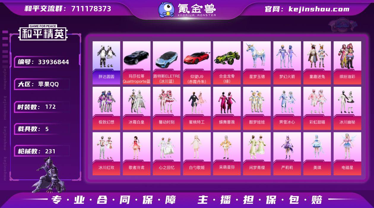 【kyhp2069】苹果 手Q-26粉装-12特效枪-5载具-6粉色飞行器-91585热力值-12王牌印记-172套装-231枪皮 【热门品类】:粉装-梦幻火箭,粉装-童趣迷兔,粉装-缤纷油彩,套装-浪漫天命,套装-胖达圆圆,套装-龟仙人,套装-暗影哥特,套装-粉红小猪,套装-红熊茄茄 【粉色套装】:粉装-梦幻火箭,粉装-缤纷油彩,粉装-极致幻想,粉装-冰霜白皇,粉装-童趣迷兔,粉装-馨动时刻,粉装-蜜桃特工,粉装-蝶舞蔷薇,粉装-酣梦娃娃,粉装-霁雪冰心,粉装-彩虹甜喵,粉装-冰川幽秘,粉装-冰川红玫,角色-歌者泠鸢,粉装-心之回忆,角色-白勺歌姬,角色-呆萌星弥,粉装-闲梦青缨,角色-严莉莉,角色-美琪,角色-电磁星,角色-星梦奇缘,粉装-金丰海韵,角色-千金淑猫,角色-月影灵韵,角色-女娲灵识 【粉色枪皮等级】:AKM-梦之光华(六级),SCAR-L-青春物语(一级),SCAR-L-纯梦嫁纱(五级),M416-心之恋语(七级),AUG-星梦奇缘(三级),UMP45-恐龙拽拽(四级),汤姆逊-冰川粉黛(七级),P90-金丰海韵(四级),Kar98K-巳巳如意(五级),SVD-月影灵韵(二级),DP-28-豹影疾电(五级),MG3-梦幻舞会(四级) 【粉色载具】:路特斯ELETRE(冰川蓝),玛莎拉蒂Quattroporte(夜幕蓝),仰望U9(赤霞丹朱),...