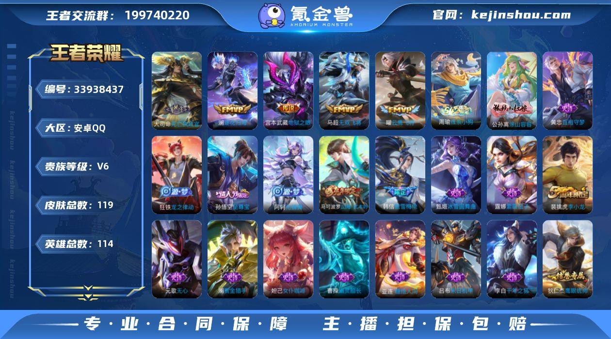 安卓Q-V6-永恒钻石V段位-114英雄-119皮肤-6传说-35史诗【英雄全皮】:敖隐全皮【传说皮肤】:马超神骥逐星野,大司命死亡执政官,澜逐花归海,马超无双飞将,曜云鹰飞将,宫本武藏地狱之眼【限定皮肤】:蒙犽顽岩魄,姜子牙天穹之誓,狄仁杰阴阳师,赵云皇家上将,高渐离玩趣恶龙,元歌无心,马可波罗山海玄木吟,狄仁杰魔术师,项羽海滩派对,韩信傲雪梅枪,孙悟空至尊宝,裴擒虎李小龙,鲁班大师探海日志,阿古朵江河有灵,张良古海寻踪,鬼谷子天穹祈灯,沈梦溪龙舞盛年,刘邦剑破天穹,周瑜熔金海岸【年限皮肤】:马可波罗山海玄木吟【赛季限定】:鲁班大师探海日志,张良古海寻踪,鬼谷子天穹祈灯,刘邦剑破天穹,姜子牙天穹之誓,太乙真人谧流熔炉,钟馗虚灵犬护,甄姬逆浪荇歌,亚瑟荣光之誓【战令限定】:周瑜线条小狗【史诗皮肤】:海月海之女神,周瑜线条小狗,公孙离涂山容容,黄忠百相守梦,狂铁龙之律动,阿轲化蝶舞,亚连糖绘人间,蒙犽顽岩魄,阿古朵江河有灵,马可波罗山海玄木吟,元歌无心,澜赏金猎手,韩信傲雪梅枪,裴擒虎李小龙,狄仁杰鹰眼统帅,大乔猫狗日记,阿轲节奏热浪,白起星夜王子,百里守约特工魅影,诸葛亮黄金分割率,兰陵王暗隐猎兽者,夏...