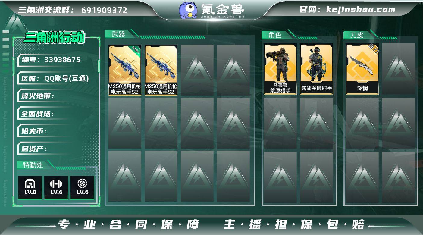 三角洲怜悯典藏枪皮号:【刀皮:怜悯】【典藏枪皮:电玩M250-优品C】【干员皮肤:露娜-金牌射手/乌鲁鲁-荒原猎手】【仓库大量六套+咖啡豆可生产】【137发AW+3组红蛋】【总资产71M/现币5W】【烽火60级/仓库8/体力6/负重6】