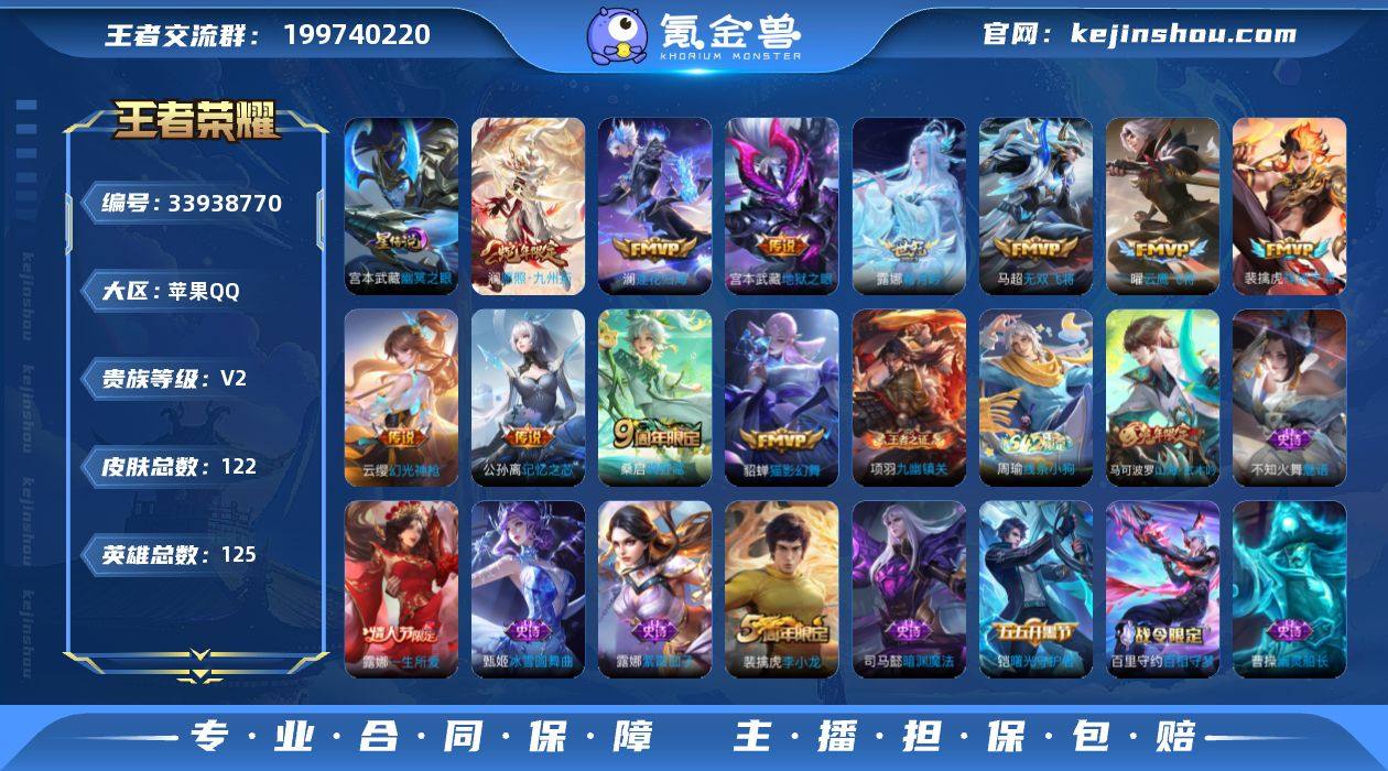 苹果Q-V2-最强王者段位-125英雄-122皮肤-11传说-30史诗【英雄全皮】:影全皮【传说皮肤】:澜愿照九州拓,云缨幻光神枪,裴擒虎祥瑞亨通,桑启鸣野蒿,澜逐花归海,露娜霜月吟,公孙离记忆之芯,马超无双飞将,曜云鹰飞将,貂蝉猫影幻舞,宫本武藏地狱之眼【限定皮肤】:姜子牙天穹之誓,狄仁杰阴阳师,赵云皇家上将,马可波罗山海玄木吟,狄仁杰魔术师,项羽海滩派对,露娜一生所爱,百里玄策原初追逐者,沈梦溪大漠名商,裴擒虎李小龙,鲁班大师探海日志,桑启海盐诗旅,张良古海寻踪,刘邦剑破天穹,周瑜熔金海岸【年限皮肤】:马可波罗山海玄木吟,澜愿照九州拓【赛季限定】:沈梦溪大漠名商,桑启海盐诗旅,鲁班大师探海日志,张良古海寻踪,刘邦剑破天穹,姜子牙天穹之誓,东皇太一噬灭天穹,太乙真人谧流熔炉,钟馗虚灵犬护,甄姬逆浪荇歌,亚瑟荣光之誓,百里玄策原初追逐者,牛魔星界战将,项羽九幽镇关【战令限定】:百里守约百相守梦,老夫子百相守梦,孙膑茶境仙,马超访茗客,周瑜线条小狗【史诗皮肤】:周瑜线条小狗,项羽九幽镇关,孙膑茶境仙,牛魔星界战将,百里守约百相守梦,马可波罗山海玄木吟,司马懿暗渊魔法,裴擒虎李小龙,百里玄策原初追逐者,不知...