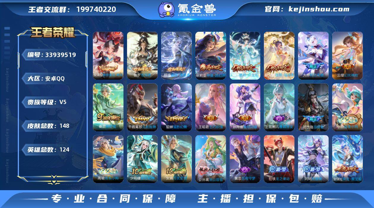 小女号 安卓Q-V5-永恒钻石IV段位-124英雄-148皮肤-1典藏皮肤-2珍品传说-10传说-36史诗 【英雄全皮】:孙权全皮,空空儿全皮,影全皮 【荣耀典藏】:安琪拉颠倒童话魔镜 【珍品传说】:伽罗沧流箭,嫦娥器灵落星盏 【传说皮肤】:朵莉亚神骥鸣幻洲,妲己愿照众生和,蔡文姬愿照福禄聚,云缨幻光神枪,桑启鸣野蒿,大乔时之奇旅,孙尚香音你闪耀,王昭君乞巧织情,貂蝉猫影幻舞,干将莫邪久胜战神 【限定皮肤】:大乔绒语心约,姜子牙天穹之誓,狄仁杰阴阳师,赵云皇家上将,孙尚香蔷薇恋人,夏侯惇朔风刀,狄仁杰魔术师,狄仁杰万华元夜,项羽海滩派对,老夫子醍醐杖,钟馗驱傩正仪,蔡文姬繁星吟游,鬼谷子原初探秘者,大乔时之奇旅,弈星混沌棋,明世隐疑决卦,裴擒虎擒涛扼浪,上官婉儿天狼绘梦者,妲己灵卜魔法,姬小满妄想食味,安琪拉乘龙聚宝船,沈梦溪龙舞盛年,周瑜熔金海岸 【年限皮肤】:安琪拉乘龙聚宝船,妲己愿照众生和,蔡文姬愿照福禄聚 【赛季限定】:夏侯惇朔风刀,弈星混沌棋,明世隐疑决卦,老夫子醍醐杖,鬼谷子原初探秘者,狄仁杰万华元夜,钟馗驱傩正仪,裴擒虎擒涛扼浪,姜子牙天穹之誓,东皇太一噬灭天穹,太乙真人谧流熔炉,钟馗虚灵犬护,甄姬逆浪...