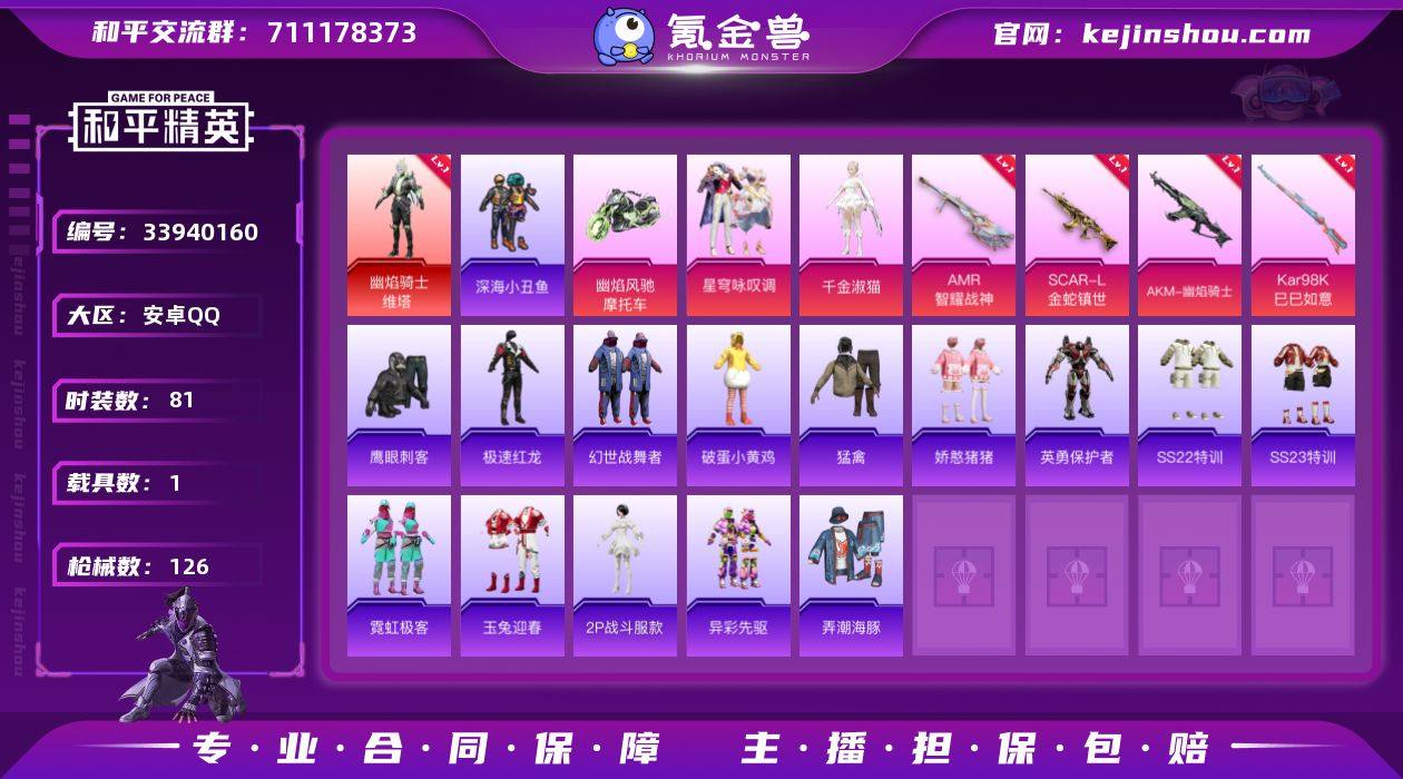 无敌战神框 1红装 2粉装 4粉枪 1载具 81套装 126枪皮 20热门 幽焰风驰摩托车 幽焰骑士-维塔 疯狂小兔子 炫蓝之夏 牛气满满 甜蜜告白 破晓战魂 柠萌假日 王牌教练 明鸳圣池 空岛之星 萌趣咩咩 竞技名士 娇憨猪猪 龙的传人 玉兔迎春 湖蓝色名流 光之冒险 绯格组合 冰冻风暴 怒火燎原 蓝彩潮人 绮丽涂鸦 特殊使命 缤纷果语 星穹咏叹调 角色-千金淑猫 SCAR-L-金蛇镇世(3级) AKM-幽焰骑士(3级) GROZA-影袭 S1897-炫彩节奏 汤姆逊-异彩先驱 汤姆逊-耀粉歌者 S12K-娇憨猪猪 汤姆逊-环太平洋 S12K-破晓战魂 AUG-耀粉歌者 S12K-玩趣呆呆 野牛-乌木金纹 MP5K-异彩先驱 AC-VAL-天降萌叽 Mini14-异彩先驱 AC-VAL-乌木金纹 G36C-六号树人 Mini14-穿刺龙虾 蜜獾-天降萌叽 蜜獾-娇憨猪猪 M24-拂晓神骑 M24-乌木金纹 QBZ-彩虹符号 Kar98K-2B战斗服款 莫辛纳甘-乌木金纹 AKM-影袭 G36C-乌木金纹 Mk14-乌木金纹 UZI-影袭 SLR-娇憨猪猪 SKS-焦糖拿铁 汤姆逊-天降萌叽 SKS-炫彩节奏 M417-猪猪侠 P90-乌木金纹 S686-彩虹符号 AMR-智耀战神(5级) Kar98K-巳巳如意(5级) 深海小丑鱼 英勇保护者 极速红龙 SS23特训 SS22特训 2P战斗服款 AKM-缤纷海域 SCAR-L-玉兔迎春 Mk47-乌木金纹 UZI-娇憨猪猪 UMP45...