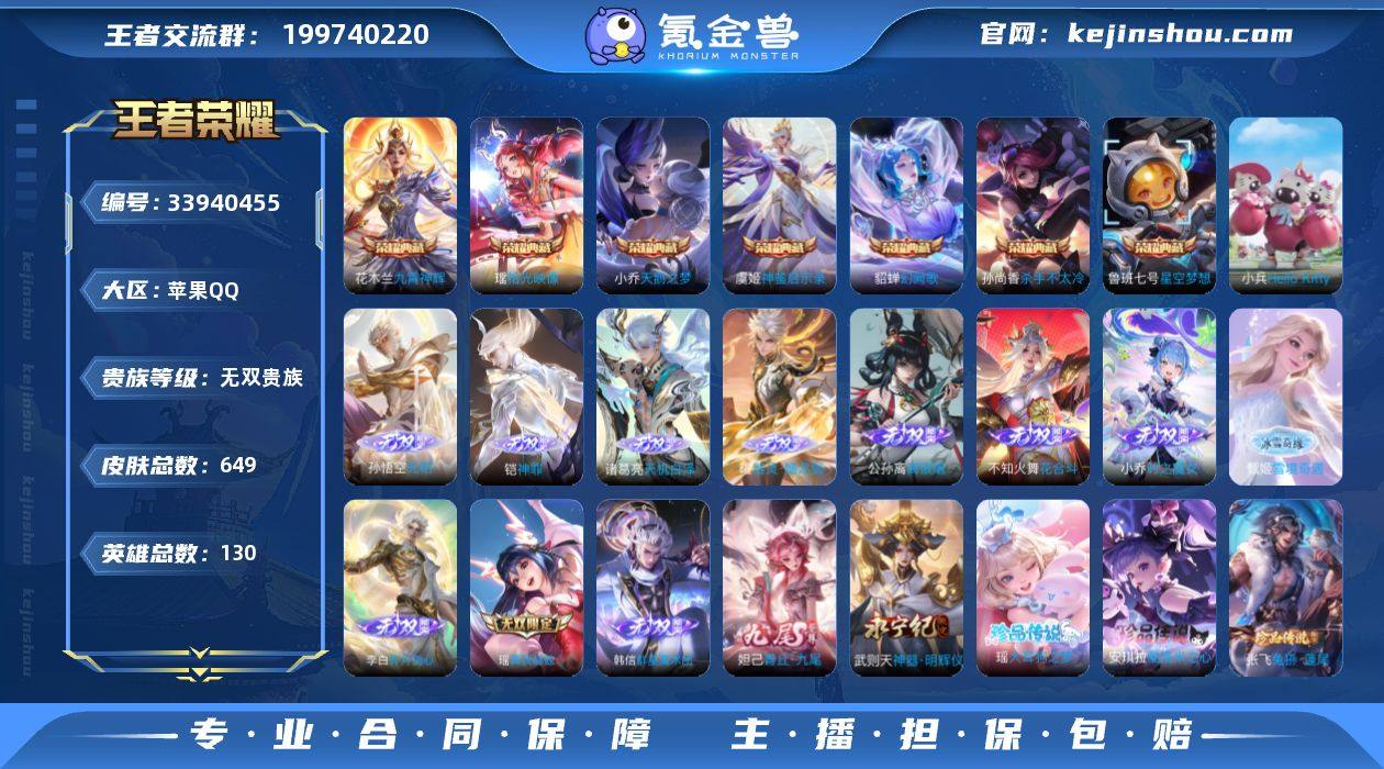 可换绑【无双V10极品女号·6.4万流光积分·福运大使主页·小乔妲己孙尚香甄姬王昭君大乔公孙离瑶西施全皮·13无双·8典藏·5珍品怪盗基德·马年蛇年全套·千劫归真·49万贵族积分】幸运值240 71按键,8星传说,4天幕,1小兵,347戳戳,22王者印记,满级铭文,无二次,苹果Q-V11-649皮肤-7典藏皮肤-1典藏英雄-13无双-5珍品传说-103传说-218史诗【英雄全皮】:廉颇全皮,小乔全皮,妲己全皮,孙尚香全皮,刘禅全皮,元歌全皮,甄姬全皮,刘邦全皮,孙权全皮,王昭君全皮,艾琳全皮,朵莉亚全皮,娜可露露全皮,橘右京全皮,钟馗全皮,苍全皮,女娲全皮,大乔全皮,百里玄策全皮,公孙离全皮,沈梦溪全皮,裴擒虎全皮,米莱狄全皮,瑶全皮,盾山全皮,猪八戒全皮,亚连全皮,马超全皮,敖隐全皮,海月全皮,曜全皮,西施全皮,蒙恬全皮,阿古朵全皮,桑启全皮,夏洛特全皮,司空震全皮,金蝉全皮,赵怀真全皮,戈娅全皮,空空儿全皮,影全皮,海诺全皮,少司缘全皮【荣耀典藏】:武则天英雄,小乔天鹅之梦,孙尚香杀手不太冷,鲁班七号星空梦想,花木兰九霄神辉,貂蝉幻阙歌,虞姬神鉴启示录,瑶拾光映像【无双皮肤】:孙悟空无相,铠神罪,诸葛亮天机白泽,曜器灵螭龙剑,甄姬雪境奇遇,...