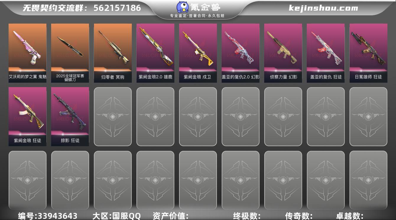 【wwxb1027】LV等级204/皮肤总价值41640/段位未定级/总皮肤数量87/刀皮数量9/枪皮数量78/套装数量3/具体详情请看图/2025全球冠军赛套装/2022全球冠军赛套装/VCT 2026 赛季套装/幻棱/炼狱/维斯/暮蝶/钛狐/壹决/铁臂/捷风/雷兹/幽影/不死鸟/贤者/猎枭/蝰蛇/零/芮娜/奇乐/尚勃勒/霓虹/斯凯/夜露/星礈/K/O/海神/盖可/黑梦/钢锁/2025全球冠军赛 蝴蝶刀/2022全球冠军赛 蝴蝶刀/近战武器-蒙太奇 战斧/近战武器-VCT 2026 篆刀/近战武器-离子武器2.0爪刀/近战武器-诡秘蛇影军刀/近战武器-神圣领域战刀/近战武器-日耀风暴遗器/近战武器-阿特拉斯指挥部 甩棍/2025全球冠军赛-狂徒/狂徒-塑水宗/超时空卫队 狂徒/狂徒-般若假面2.0/狂徒-掠影/狂徒-盖亚的复仇/狂徒-日冕雄师/狂徒-紫阙金琅/狂徒-诡秘蛇影/2022全球冠军赛 幻影/幻影-盖亚的复仇2.0/幻影-侦察力量/神圣领域 幻影/幻影-蒙太奇/幻影-末日之翼/戍卫-紫阙金琅/戍卫-月球哨兵/戍卫-折光棱晶/神圣领域 獠犬/冥驹-归零者/星云暗涌 冥驹/飞将-末日之翼/莽侠-诡秘蛇影/月球哨兵 莽侠/神圣领域 战神/战神-蒙太奇/奥丁-末日之翼/判官-诡秘蛇影/雄鹿-紫阙金琅2.0/月球哨兵 雄鹿/骇灵-无限竞技/骇灵-蒙太奇/骇灵-星云暗涌/星云暗涌 蜂刺/蜂...