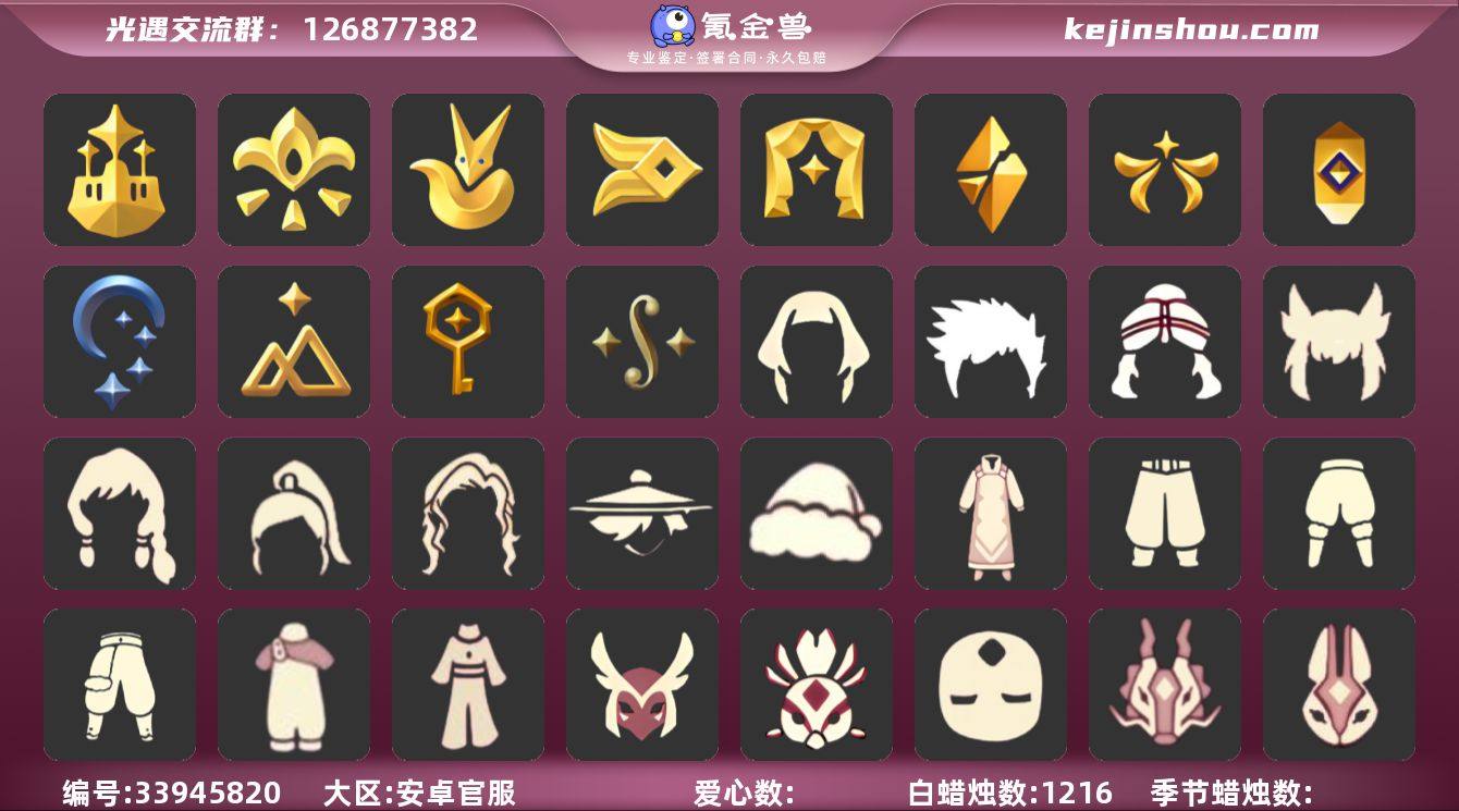 15季8翼白枭透明蝶翼武士裤玫瑰花王子围巾巫师帽鲲灯正太虚荣 资源:蜡烛1216 爱心156 红烛17 已毕业地图:全图 毕业季节:梦想季 集结季 王子季 风行季 表演季 破晓季 欧若拉 追忆季 夜行季 拾光季 筑巢季 二重奏 毕业物品:凤凰面具 凤凰斗篷 队长面具 双耳锅帽 胜利号角 连帽斗篷 小王子发型 小王子套装 玫瑰花 小王子套装 多羽发饰 蓝黄羽袖 黄眉企鹅面具 燕尾斗篷 白枭发型 留辫蘑菇头 高领舞服 透明蝶翼斗 肩带 追忆之书 棕熊面具 绒毛斗篷 粗框眼镜 季卡相机 西部帽 设计师长袍 光之子试衣 合奏挂画 蓝色燕尾服 白色高脚钢琴 双翼遥鲲斗篷 冥龙斗篷 稀有礼包:巫师帽 大桔大利 玉兔发饰 圣诞鹿角 冥龙号角 凯旋提琴 玫瑰花 王子围巾 热门裤子:背带裤 鳐鲲长裙 绷带舞服 墨绿长裤 奔月长裙 白棉裤 搓澡巾 紧身连体衣 武士裤 王子服 羽袖长袍 小丑服 女仆围裙 美工衣 热门面具:矮人面具 狐狸面具 黄鼠狼面具 红兔面具 凤凰面具 集结面具 黄眉面具 一字眉 棕熊面具 龙头 玫瑰花面具 黑框眼镜 黑脸 热门发型:爆炸头 海草头 大胡子 小飞象 雨妈 卡卡 平菇 龙骨 指甲盖 箬笠 蝴蝶结 公主头 粗辫 水母头 书虫 总...