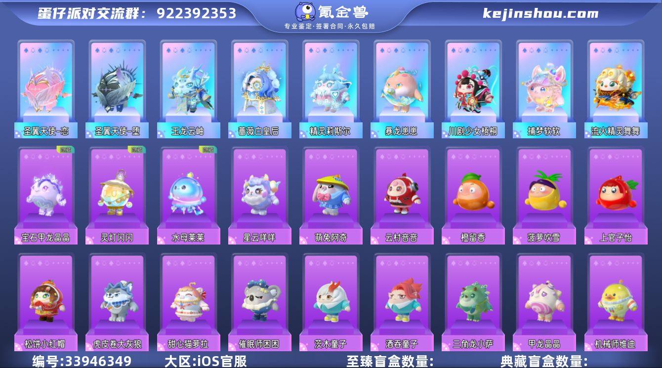 10幻彩59紫圣翼天使澄DongDong精灵莉斯尔红小豆圣翼天使恋暴龙崽崽圣翼天使堕捕梦软软 "性别:女 等级:34 段位:三阶鸡蛋 历史潮流:8,5w 幻彩套装数量:10 紫色套装数量:59 幻彩套装:圣翼天使澄,川剧少女梧桐,流火精灵舞舞,捕梦软软,暴龙崽崽,精灵莉斯尔,玉龙云岫,圣翼天使堕,圣翼天使恋,蔷薇白皇后, 紫色套装:魔灯闪闪,刺猬绷绷,吟游诗人弥亚,星云咩咩,玫瑰骑士,盖碗茶青青,仙人掌丘丘,甲龙晶晶,铃兰三月兔,松饼小红帽,狗蛋阿甜,饶舌诗人,灵灯闪闪,海藻偷偷,雪王,彩虹水波蛋,熊猫岁岁,兔仙,菜鸟笨笨,机械师维迪,航天员莱卡,酒吞童子,茨木童子,莹草班主任,催眠师困困,三角龙小萨,宝石甲龙晶晶,失心熊,上官子怡,菠萝吹雪,橙留香,云村音音,八音盒温妮,水母尤莱亚,水母莱莱,仓鼠米仔,貔貅福福,涂山浅浅,机械鼓手贝克,懒羊羊,苹果派雪雪,抹茶游侠,长草颜团子,鹦鹉芝芝,李建勋,吾皇猫,蓝樱爱丽丝,菠萝苏苏,红小豆,虎皮卷大灰狼,仔仔熊,dongdong,水波蛋,甜心猫萝拉,萌兔阿奇,哞哞,圆圆子,糖心公主,淘气丸子, 背饰:山水谣,裁决圣环,闪闪星蝶翅膀,流火花环,美梦指南针,太空猫包,蜀风古韵扇,木质怪...