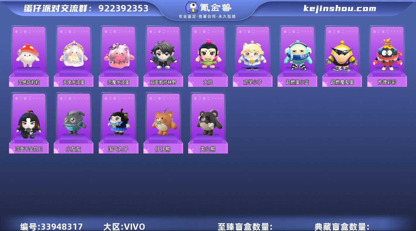 淘气丸子青莲剑阵异想泡泡灵感菇粒粒古风小生汪伦 历史潮流:2.9万 段位:三阶鸡蛋 等级:64 性别:女 紫色套装数量:20 紫色套装:灵感菇粒粒,古风小生汪伦,抽象蛋小黄,黑拳瓦格纳,冷面千金竹月,劝学小子,哈尼执事,小福袋天运,失心熊,淘气丸子,恶魔水波蛋,天使水波蛋,双面教师林野,海盐布丁,嘟嘟,超燃魔鬼蛋,超燃蛋小蓝,大娃,炸弹彩彩,小灰灰,仔仔熊 玩具:随行召唤器,章鱼烧召唤器,解压木鱼,三周年蛋糕,玩具,鱼篓。 背饰:青莲剑阵,异想泡泡,恶魔棒棒糖,天使棒棒糖,百合里拉琴,蔷薇知己,快乐人生,羊羊羊果篮,飞行滑翔翼,竹叶折扇,开心饼干盒,剪春纸鸢,海底通缉令,巧巧小剪刀,天使微光,蛇来运转,感谢花束,绮梦双鱼座,MOCA背包,音浪星梦 呦呦:悬浮小叽,小火箭