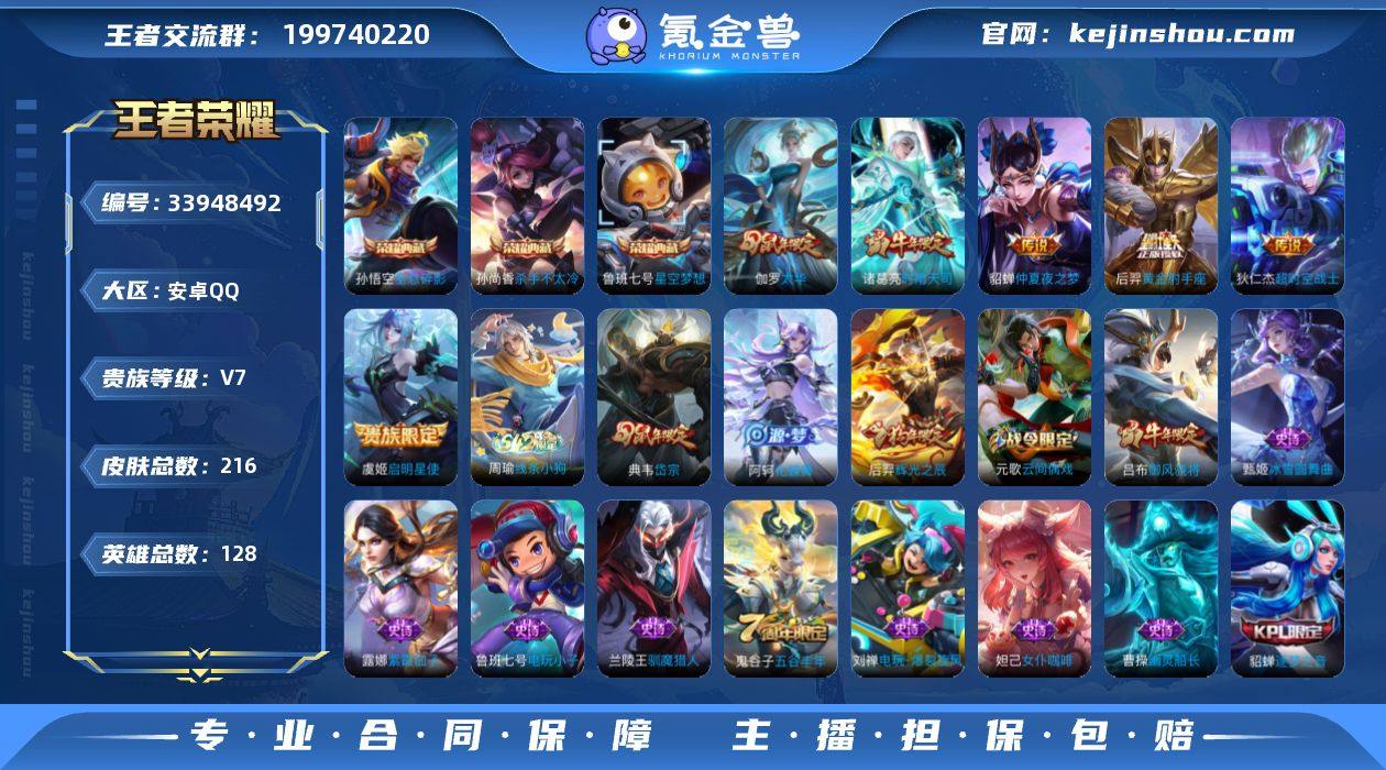 编号A00599 可二次 V8 216皮肤 3典藏 6传说 全息碎影 星空梦想 杀手不太冷 太华 启明星使 时雨天司 狄仁杰-超时空战士 云端筑梦师 天狼溯光者 辉光之辰 黄金射手座 御风骁将 仲夏夜之梦 幽灵船长