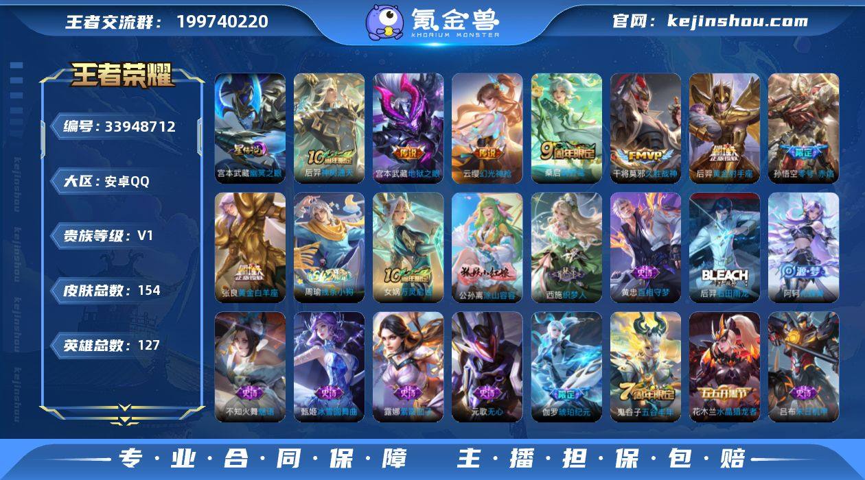 捡漏打野小号,安卓Q-V0-永恒钻石V段位-127英雄-154皮肤-8传说-34史诗 【传说皮肤】:后羿神树通天,云缨幻光神枪,桑启鸣野蒿,孙悟空零号赤焰,张良黄金白羊座,干将莫邪久胜战神,后羿黄金射手座,宫本武藏地狱之眼 【限定皮肤】:蒙犽顽岩魄,姜子牙天穹之誓,杨戬破阵退雄兵,狄仁杰阴阳师,孙尚香蔷薇恋人,高渐离玩趣恶龙,元歌无心,兰陵王金庭之子,孙悟空零号赤焰,李元芳云中旅人,鬼谷子五谷丰年,沈梦溪大漠名商,裴擒虎擒涛扼浪,上官婉儿梁祝,鲁班大师探海日志,桑启海盐诗旅,阿古朵江河有灵,张良古海寻踪,鬼谷子天穹祈灯,伽罗琥珀纪元,沈梦溪龙舞盛年,刘邦剑破天穹,程咬金群星魔术团,周瑜熔金海岸 【赛季限定】:兰陵王金庭之子,沈梦溪大漠名商,李元芳云中旅人,桑启海盐诗旅,裴擒虎擒涛扼浪,鲁班大师探海日志,张良古海寻踪,鬼谷子天穹祈灯,刘邦剑破天穹,姜子牙天穹之誓,东皇太一噬灭天穹,太乙真人谧流熔炉,钟馗虚灵犬护,亚瑟荣光之誓 【战令限定】:周瑜线条小狗 【史诗皮肤】:周瑜线条小狗,女娲万灵启世,公孙离涂山容容,西施织梦人,黄忠百相守梦,后羿石田雨龙,阿轲化蝶舞,蒙犽顽岩魄,伽罗琥珀纪元,阿古朵江河有灵,元歌无心...