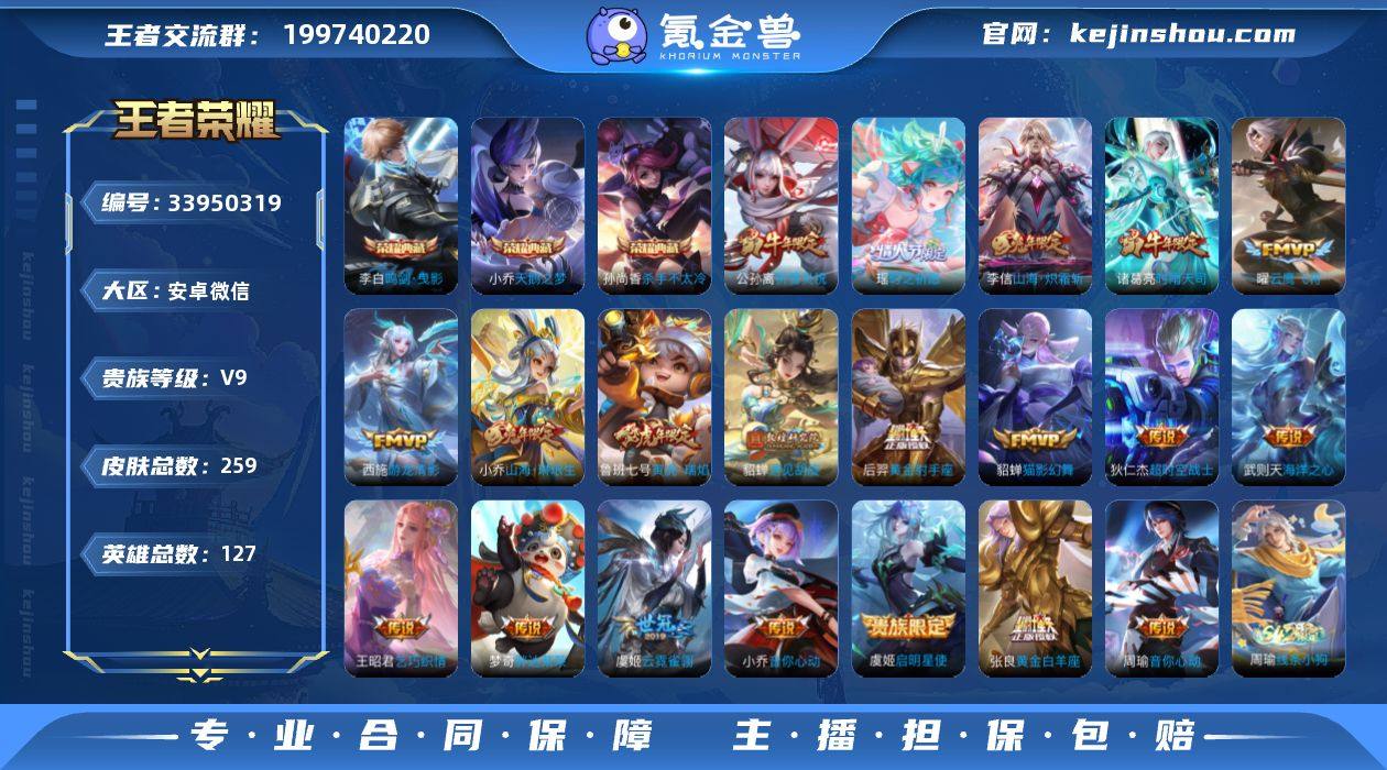 6按键【店铺主推·V9精品女号·瑶时之祈愿·貂蝉遇见胡旋·兔年小乔·祈雪灵祝·魔法小厨娘·凤凰于飞·4典藏】4王者印记 300五级铭文 可二次 安卓WX-V9-259皮肤-3典藏皮肤-1典藏英雄-20传说-91史诗【英雄全皮】:孙权全皮【荣耀典藏】:武则天英雄,小乔天鹅之梦,孙尚香杀手不太冷,李白鸣剑曳影【传说皮肤】:小乔山海琳琅生,李信山海炽霜斩,瑶时之祈愿,鲁班七号寅虎瑞焰,貂蝉遇见胡旋,王昭君乞巧织情,西施游龙清影,周瑜音你心动,小乔音你心动,公孙离祈雪灵祝,诸葛亮时雨天司,虞姬启明星使,曜云鹰飞将,貂蝉猫影幻舞,张良黄金白羊座,虞姬云霓雀翎,梦奇胖达荣荣,后羿黄金射手座,武则天海洋之心,狄仁杰超时空战士【限定皮肤】:狄仁杰阴阳师,小乔山海琳琅生,赵云皇家上将,墨子神迹守卫,妲己时之彼端,嬴政优雅恋人,孙尚香蔷薇恋人,鲁班七号寅虎瑞焰,庄周云端筑梦师,孙膑天狼运算者,孙膑寅虎展翼,芈月重明,芈月白晶晶,芈月幻夜卜梦,周瑜赤莲之焰,元歌云间偶戏,甄姬女儿国国王,甄姬游园惊梦,曹操烛龙,马可波罗逐梦之星,马可波罗暗影游猎,狄仁杰魔术师,狄仁杰万华元夜,达摩星际陆战队,达摩沙漠行僧,项羽海滩派对,老夫子醍醐杖,老夫子航海奇...