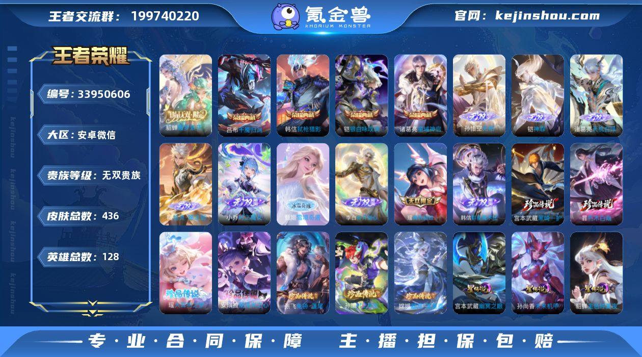 【店铺主推·无双V10精品号·流光积分8万·9无双·貂蝉慕夏·对抗路49段·7珍品·4典藏·超多年限质量号·贵族积分27万】256戳戳,3星传说,58按键,18王者印记,260五级铭文,可二次,安卓WX-V11-至尊星耀V段位-128英雄-436皮肤-4典藏皮肤-1珍品无双-9无双-7珍品传说-77传说-156史诗【英雄全皮】:元歌全皮,司马懿全皮,孙权全皮,苍全皮,大司命全皮,敖隐全皮,蒙恬全皮,夏洛特全皮,莱西奥全皮,空空儿全皮,影全皮,海诺全皮,姬小满全皮,少司缘全皮【荣耀典藏】:诸葛亮星域神启,铠银白咏叹调,韩信弑枪猎影,吕布千魇归渊【珍品无双】:貂蝉馥梦繁花【无双皮肤】:孙悟空无相,铠神罪,诸葛亮天机白泽,曜器灵螭龙剑,甄姬雪境奇遇,韩信群星魔术团,小乔时之魔女,李白碎月剑心,瑶真我赫兹【珍品传说】:宫本武藏黑崎一护,暃朽木白哉,安琪拉酷洛米之心,瑶大耳狗之梦,张飞兔狲蓬尾,嫦娥器灵落星盏,孙策时之奇旅【星元皮肤】:宫本武藏幽冥之眼,貂蝉金色仲夏夜,孙尚香未来机甲【传说皮肤】:杨戬纵目迁山,后羿神树通天,曹操万灵伏威,干将莫邪千山共赴,元歌诡秘之主,大司命死亡执政官,司马懿九山相柳,公孙离云诺千山,西施续相思,杨玉环星之鸣奏,后羿千劫归...