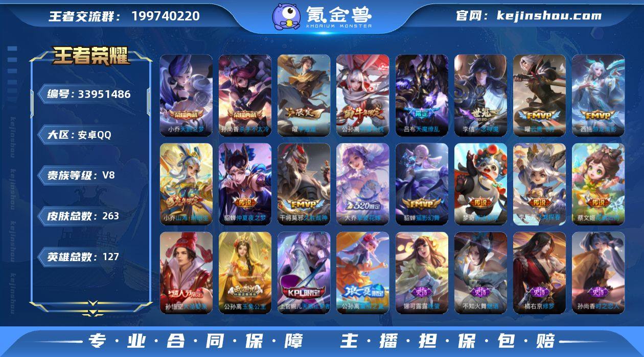 说 127英雄 263皮肤 可修改实名 女号 【英雄全皮】大禹全皮 【稀有英雄】大司命,嬴政(始皇帝),韩信(韩跳跳),夏洛特(夏师傅),艾琳,橘右京(橘子),娜可露露(鸟人),不知火舞,赵云,金蝉(唐僧),戈娅 【荣耀水晶】杀手不太冷,天鹅之梦(小乔典藏) 【传说皮】李逍遥,游龙清影(小青龙),山海·琳琅生(小乔年限),仲夏夜之梦(大飞蛾),一念神魔,久胜战神,猫影幻舞,云鹰飞将(小将军),音你心动-小乔,胖达荣荣,飞鸢探春,花朝如约(花篮子),挚爱花嫁,百相守梦(张飞) 【珍宝阁皮】蔷薇恋人,女武神,玩趣恶龙 【赛季/战令皮】古海寻踪(s33),海盐诗旅(s30),擒涛扼浪(s31),探海日志(s32),天穹祈灯(s34),天穹之誓(s36),狮心王(s3),蜃楼王(s4),凯尔特女王(s7),狰(s8),烛龙(s10),穷奇(s12),御狮(s13),御霄(s14),御旌(s15),御銮(s16),朔风刀(s17),混沌棋(s18),疑决卦(s19),万华元夜(s22),演武夺筹(s23),驱傩正仪(s24),千军破阵(s25),猎兽之王,白昼王子,神迹守卫-钟馗,狮舞东方,星空之诺,银河之约,夺宝奇兵,迷踪丽影,西部大镖客-猪八戒,暗影游猎(游乐娃子),单词大作战,狂想玩偶喵,星际陆战队-达摩,胡桃异想国,神迹守卫-墨子,航海奇遇记,火炮绅士,沙漠行僧(s26),幻夜卜梦,吟游魔法,夜都怪侠,金庭之子(s27),大...