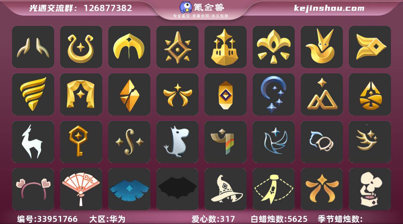 账号类型: 手机账号 季节已毕业: 魔法季,圣岛季,预言季,梦想季,小王子季,风行季,潜海季,表演季,破晓季,欧若拉季,集结季,夜行季,追忆季,拾光季,归巢季,九色鹿季,筑巢季,二重奏季,姆明季,彩染季,青鸟季,双星季,迁徙季,织光季 完成地图: 晨岛,云野,雨林,霞谷,暮土,禁阁 珍稀物品: 鳐鲲斗篷,阿努比斯(狗头),白枭,透明蝶翼斗,魔法季耳坠,玫瑰花,彩虹围巾 礼包: 蝙蝠套,巫师,围巾,欧若拉之翼,音乐桌,大铁头,鹿角,大耳狗发饰,秋千,茶桌,白绒金,福娃,小船,灯笼,风之旅人,人声乐器,奔跑发型,彩虹帽,橘子,贝壳,红伞,兔子,枯角,雪花,星月头饰,彩虹耳钉,彩虹耳机,新年裤,蝴蝶结,奥利奥,四叶草,暗彩装扮,向日葵套,新年耳钉,创始人,海蓝波浪发型,日光耳环,满月耳坠,锦标赛桂冠,献瑞折扇礼包,心心相印发饰礼包,线框斗篷礼包 裤子: 武士裤,背带裤,搓澡巾,击剑裤,妮妮裙子,王子服,蓝绿裤,飞天裤,筑巢季·裤子,青鸟尊贵蓬头裤子 面具: 阿努比斯,凤凰面具,裂纹面具,贴花面具,呼吸面具,夜行毕业面具,黄眉企鹅面具,辉光羚羊面具 面饰: 红耳机,黑框眼镜,青鸟毕业面饰 项链: 围巾 发型: 归巢毕业发型,若笠,虚荣,单侧绑发,小王子发型,留辫蘑菇头,飞天盘发,海蓝波浪发型 头饰: 行军锅头盔,羽毛发饰,牛...