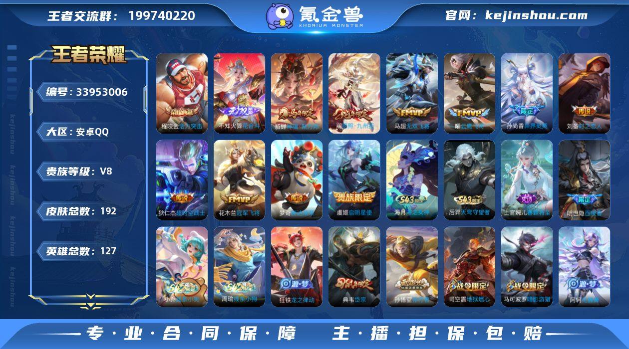 【mwz482】安卓Q-V8-最强王者段位-127英雄-192皮肤-1典藏皮肤-1无双-10传说-67史诗 【荣耀典藏】:程咬金活力突击 【无双皮肤】:不知火舞花合斗 【传说皮肤】:貂蝉神骥聚万邦,澜愿照九州拓,马超无双飞将,孙尚香异界灵契,虞姬启明星使,曜云鹰飞将,刘备时之恋人,花木兰冠军飞将,梦奇胖达荣荣,狄仁杰超时空战士 【限定皮肤】:大乔绒语心约,姜子牙天穹之誓,狄仁杰阴阳师,赵云皇家上将,孙尚香异界灵契,阿轲迷踪丽影,钟无艳超时空战士,吕布御风骁将,元歌无心,甄姬落雪兰心,典韦岱宗,马可波罗暗影游猎,狄仁杰魔术师,狄仁杰万华元夜,达摩沙漠行僧,项羽海滩派对,老夫子醍醐杖,安琪拉魔法小厨娘,程咬金演武夺筹,刘邦夺宝奇兵,王昭君午后时光,兰陵王金庭之子,孙悟空孙行者,牛魔御旌,李元芳云中旅人,虞姬启明星使,钟馗驱傩正仪,杨戬潮玩骑兵,干将莫邪胡桃夹子,鬼谷子原初探秘者,鬼谷子五谷丰年,弈星混沌棋,梦奇顽趣,沈梦溪大漠名商,沈梦溪匿光破解者,明世隐疑决卦,裴擒虎李小龙,裴擒虎擒涛扼浪,狂铁电玩高手,米莱狄御霄,云中君纤云弄巧,猪八戒西部大镖客,嫦娥暖冬兔眠,西施玲珑珍味,鲁班大师探海日志,桑启海盐诗旅,暃星界游侠...