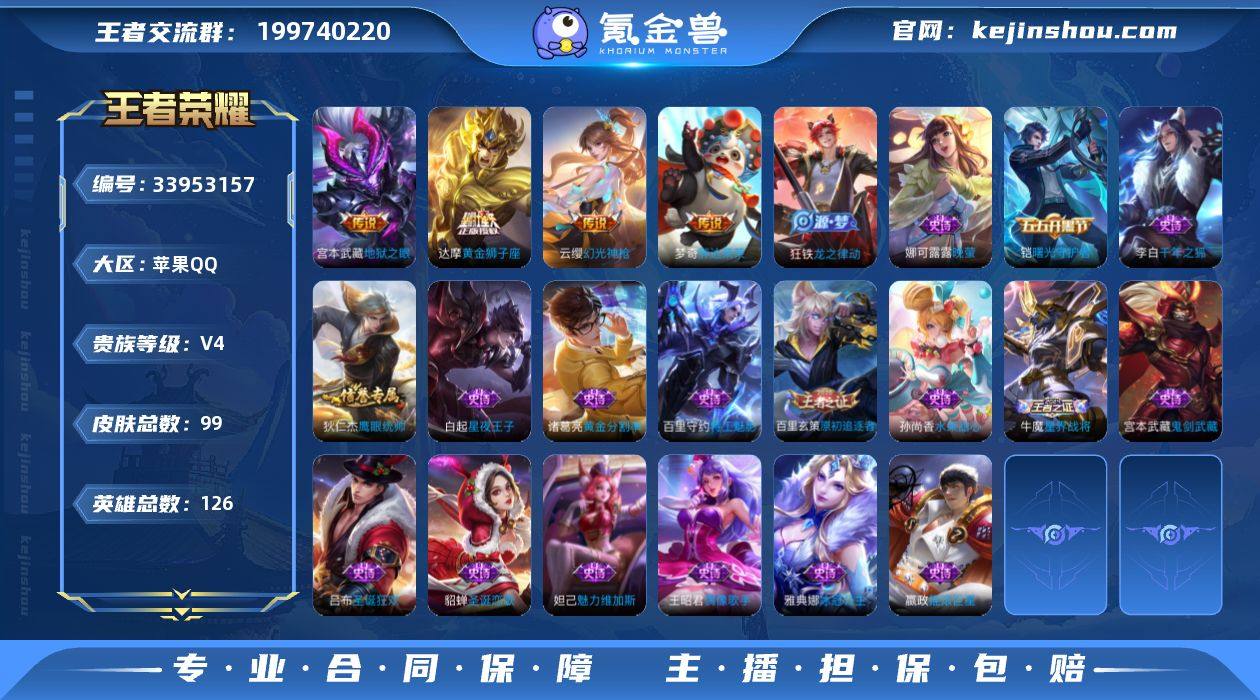 V4 1珍品传说 5传说 126英雄 99皮肤 可二次 可修改实名 金标达摩 【稀有英雄】大司命,韩信(韩跳跳),夏洛特(夏师傅),艾琳,橘右京(橘子),娜可露露(鸟人),不知火舞,赵云,金蝉(唐僧),戈娅 【珍品传说】怪盗基德 【传说皮】幻光神枪,黄金狮子座,地狱之眼,胖达荣荣 【珍宝阁皮】妄想食味 【赛季/战令皮】噬灭天穹(s37),古海寻踪(s33),海盐诗旅(s30),擒涛扼浪(s31),探海日志(s32),剑破天穹(s35),天穹祈灯(s34),天穹之誓(s36) 【史诗皮】星界战将,龙之律动,罗小黑战记-百里玄策,线条小狗-周瑜,紫霞仙子,黄金分割率,特工魅影,千年之狐,冰冠公主,偶像歌手,晚萤,猫狗日记-孙策,节奏热浪,摇滚巨星,水果甜心,星夜王子,鬼剑武藏,曙光守护者,原初追逐者,圣诞狂欢,圣诞恋歌,鹰眼统帅,魅力维加斯,未来纪元-赵云 【限定皮】逐霄战戟,鸣野蒿,梁祝 【普通皮】铁骨偃魂,雾都夜雨,谧流熔炉,劲辣红锅,雪境奇遇-西施,街头霸王,龙舞盛年,熔金海岸,苍林狼骑,虚灵犬护,鹤鸣心笺,荣光之誓,班班快跑,百相守梦-影,罗小黑战记-哪吒,灵野札记,太极少年,热血海滩,完美运算,鬼谷子天穹祈灯(S34),蔚蓝守将,五福同心,花好人间,海滩派对,敏锐之力,纽约教父,乓乓大师,黄金武士,天使之翼,功夫老勺,教廷特使,阴阳师,兔...