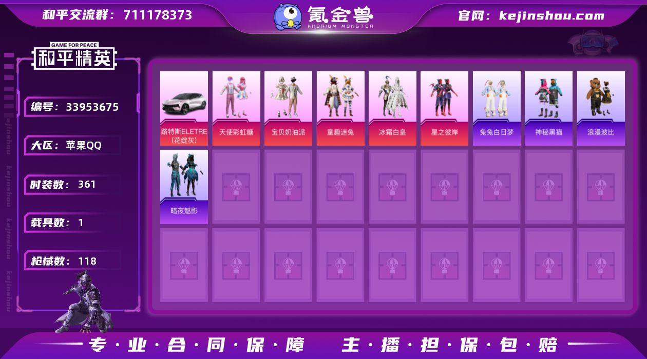 【紫色装扮】游乐,沙漠毒蛇,极地朋克,千禧之恋,夏日音浪,怒火燎原,完美偶像,帅气教官,破蛋小黄鸡,甜蜜菠萝,疯狂小兔子,白熊同盟,狂沙舞者,福星高照,空岛之星,突袭者,滨海假日,滨海厨神,狂战萌兔,炫蓝之夏,热血青春,牛气冲天,牛气满满,特战装甲,SS21特训,飞驰魅影,音速流光,SS19特训,SS20特训,冰川特警,人气偶像,军械专家,SS31特训套装,SS36特训,狙击之神,缤纷果语,霓虹街区,长空猛禽,霓虹极客,风行保卫者,飞行日记,骑行爱好者,魅力单车,耀眼新星,蓝色守护者,龙的传人,SS18特训,竞技名士,摩登魅猫,暗影哥特(红眼罩),SS32特训套装,巳巳如意,浪漫天命,锦衣飞扬,SS25特训,惊鸿侠骨,SS26特训,春光漫游,快闪甜心,原初圣火,逆风勇士,SS12特训,薄荷蓝莓,萌主吾皇,镭射皇者,银白舞王,SS13特训,纯白誓言,SS11特训,耀粉歌者,粉甜马卡龙,冰爽海盐,SS16特训,龙宫之主,遗落祭司,瑞龙福将,团圆交子,SS17特训,极乐追光,异彩先驱,治愈之星,科技之星,SS14特训...