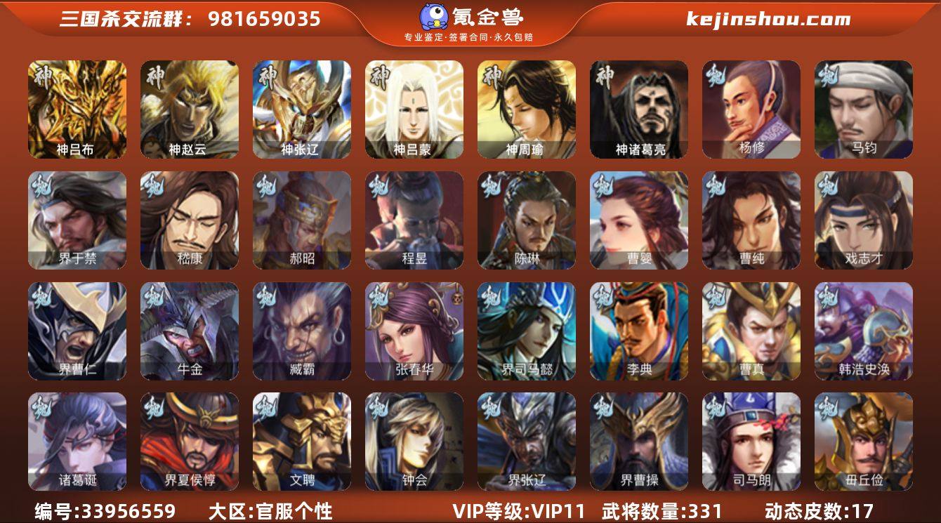 神吕布,神赵云,神张辽,神诸葛亮,杨修,马钧,界于禁,嵇康,郝昭,陈琳,曹婴,曹纯,戏志才,程昱,关索,谋夏侯氏,谋马超,张星彩,沙摩柯,花鬘,留赞,界朱然,界徐盛,贺齐,左慈,张让,徐荣,苏飞,司马徽,麹义,祢衡,沮授,界左慈,界李儒,卑弥呼,许攸,兀突骨,神吕蒙,神周瑜,SP关羽,SP蔡文姬,乐进,曹昂,诸葛诞,朱灵,文聘,SP姜维,张春华,钟会,曹冲,郭淮,满宠,界王异,界曹操,界司马懿,界夏侯惇,界张辽,界许褚,界郭嘉,李典,曹真,韩浩史涣,陈群,曹叡,曹休,钟繇,司马朗,王基,李通,郭皇后,辛宪英,界甄姬,吕虔,鲁芝,蒯越蒯良,界典韦,界荀彧,杜畿,毌丘俭,界邓艾,界曹植,界满宠,卞夫人,辛毗,崔琰,牵招,牛金,界曹仁,臧霸,SP孙尚香,关银屏,夏侯霸,马良,关兴张苞,廖化,界马岱,关平,简雍,刘封,界法正,界关兴张苞,界刘备,界关羽,界张飞,界赵云,界马超,SP徐庶,吴懿,周仓,张松,刘谌,夏侯氏,糜竺,马忠,孙乾,李严,黄皓,吴苋,秦宓,界黄月英,界诸葛亮,赵统赵广,严颜,界伊籍,界卧龙诸葛,界庞统,陈到,界姜维,胡金...