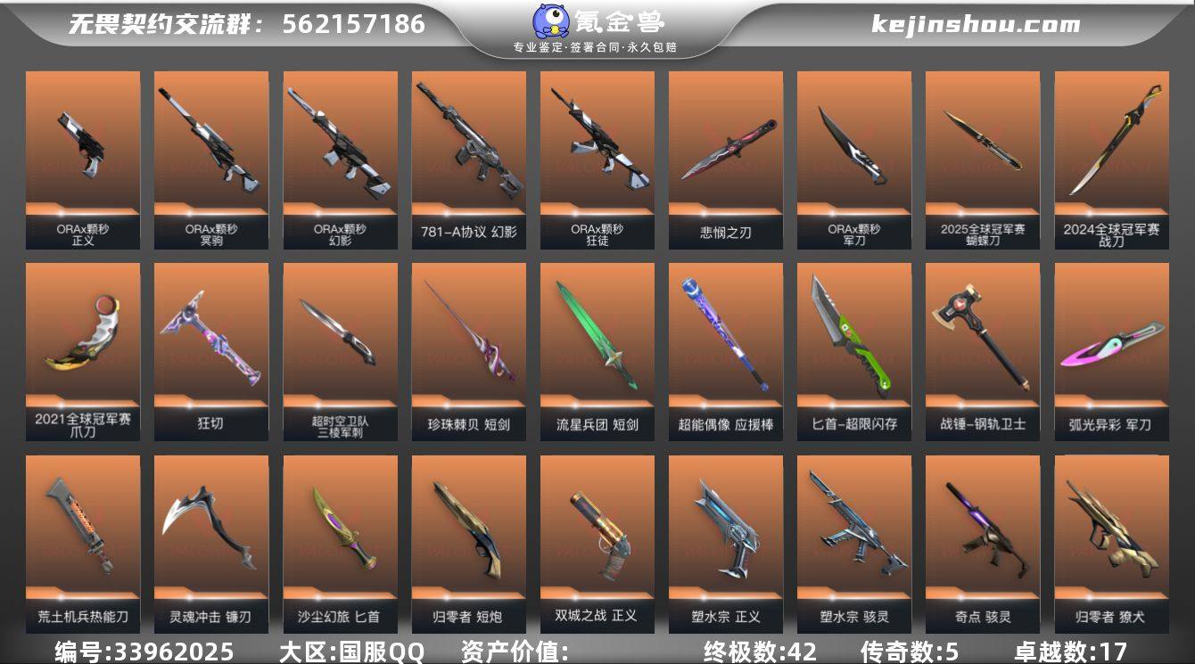 【qyz10080】【⭐ 可二次 卖号能回血 大限定账号 离火 爆爆正义 21 23ak 24 25 怜悯 大库存 】 qyz10080 【近战武器】:近战武器-2025全球冠军赛 蝴蝶刀,近战武器-2024全球冠军赛 战刀,近战武器-2021全球冠军赛 爪刀,近战武器-蒙太奇 战斧,近战武器-无畏契约季前邀请赛 悲悯之刃,近战武器-ORA x 颗秒 军刀,近战武器-超时空卫队 三棱军刺,近战武器-剥皮小刀,近战武器-离火刃,近战武器-黑波之刃,近战武器-落英飞旋,近战武器-威龙之刃,近战武器-珍珠棘贝 短剑,近战武器-流星兵团 短剑,近战武器-超能偶像 应援棒,近战武器-超限闪存 匕首,近战武器-定海神珍,近战武器-钢轨卫士 战锤,近战武器-弧光异彩 军刀,近战武器-荒土机兵 热能刀,近战武器-狂切,近战武器-灵魂冲击 镰刃,近战武器-命运权杖,近战武器-沙尘幻旅 匕首,近战武器-生物收割器 【狂徒】:狂徒-2025全球冠军赛,狂徒-2023全球冠军赛,狂徒-2021全球冠军赛,狂徒-归零者,狂徒-混沌序曲,狂徒-塑水宗,狂徒-多弥尔的复仇,狂徒-ORA x 颗秒,狂徒-堕天遗武,狂徒-盖世英雄,狂徒-盖亚的复仇,狂徒-日冕雄师,狂徒-猩红猛兽,狂徒-耀鳞威龙,狂徒-紫阙金琅,狂徒-超能偶像,狂徒-钢轨卫士,狂徒-...