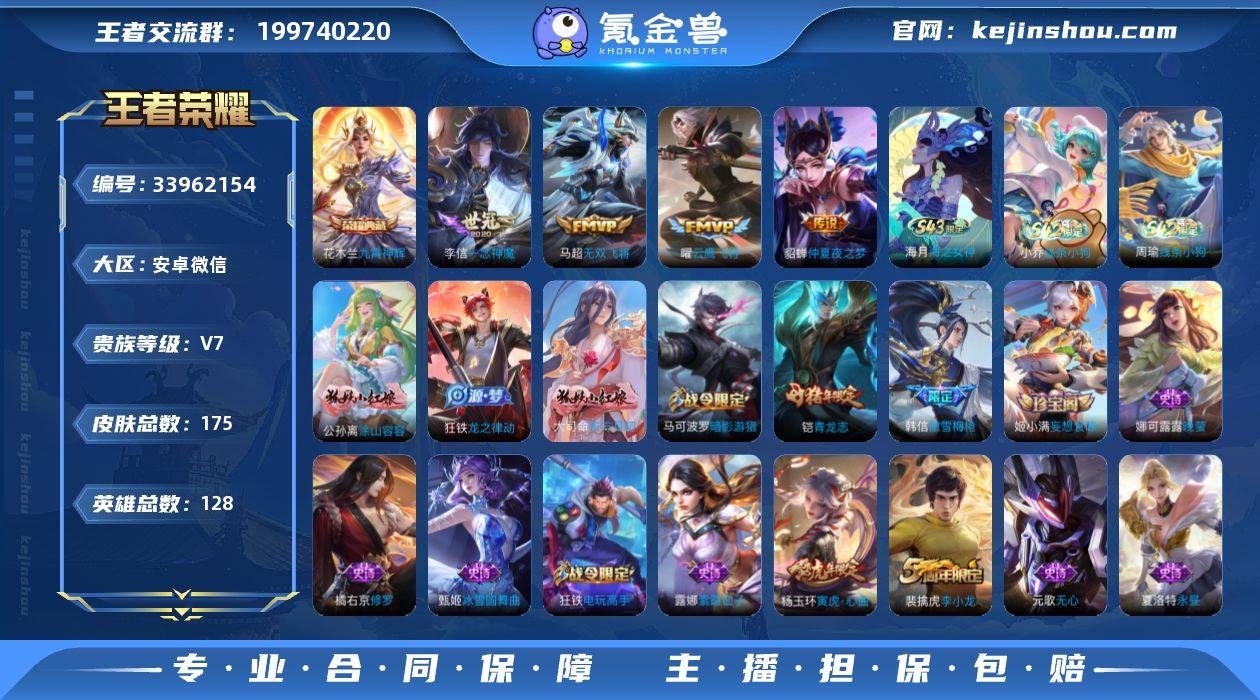 历史小国元歌,金标李信,安卓WX-V7-永恒钻石I段位-128英雄-175皮肤-1典藏皮肤-4传说-51史诗 【荣耀典藏】:花木兰九霄神辉 【传说皮肤】:马超无双飞将,曜云鹰飞将,李信一念神魔,貂蝉仲夏夜之梦 【限定皮肤】:蒙犽顽岩魄,姜子牙天穹之誓,狄仁杰阴阳师,赵云皇家上将,庄周高山流水,芈月幻夜卜梦,元歌无心,马可波罗暗影游猎,狄仁杰魔术师,狄仁杰万华元夜,达摩沙漠行僧,项羽海滩派对,老夫子醍醐杖,程咬金演武夺筹,韩信傲雪梅枪,王昭君午后时光,兰陵王金庭之子,花木兰瑞麟志,后羿圣弓游侠,李元芳云中旅人,钟馗驱傩正仪,杨玉环遇见飞天,杨玉环寅虎心曲,干将莫邪真爱魔法,雅典娜单词大作战,雅典娜黎明之约,鬼谷子原初探秘者,黄忠火炮绅士,铠青龙志,苏烈千军破阵,百里玄策原初追逐者,梦奇顽趣,沈梦溪大漠名商,裴擒虎李小龙,裴擒虎擒涛扼浪,狂铁电玩高手,猪八戒西部大镖客,上官婉儿神器万象笔,嫦娥拒霜思,嫦娥暖冬兔眠,鲁班大师探海日志,镜匿光追影者,桑启海盐诗旅,暃星界游侠,艾琳女武神,张良古海寻踪,蒙恬荣光圣徽,鬼谷子天穹祈灯,姬小满妄想食味,周瑜熔金海岸 【年限皮肤】:花木兰瑞麟志,铠青龙志,杨玉环寅虎心曲 【赛季...