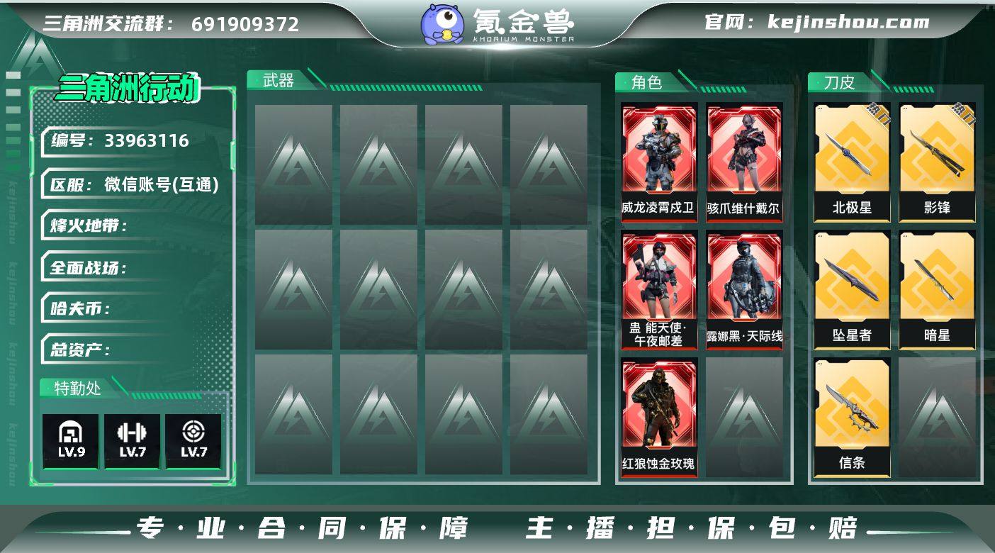 蝴蝶刀!北极星!信条!暗星!坠星者!蚀金玫瑰!凌霄戍卫!午夜邮差!黑天际线!维什戴尔!1200三角卷!可二次!I10723.微信-250M资产9仓6指挥7训练7靶场