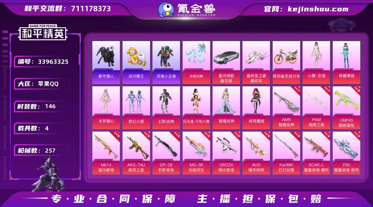 【都市 金鞋 新101 智耀战神 3级AUG星梦 6把计数枪】 YXc30927-【无二次】【因赛季更新游戏段付以上号为准!】 苹果Q-4稀有4载具8粉装16特效枪12热门146套装257枪皮 10印记 历史绝世王牌21星 【4稀有】 都市猎人 浪漫天命 派对舞王 派对舞王(金靴子) 【4载具】 星河领航(磐石银) 冰绡玉鳞 最终圣卫者摩托车 辉羽雀灵自行车 【8粉装】 梦幻火箭 狂花道·不知火舞 绯穹魔姬 小舞恋语 异瞳寒姬 羊梦糖心 幻影战神 智耀战神 【16特效枪】 SCAR-L-金蛇镇世 (3级) P90-魔童闹海敖丙 (3级) SCAR-L-魔童闹海哪吒 (3级) AKS-74U-森灵之息 (5级) Kar98K-巳巳如意 (5级) Vector-最终圣卫者 (3级) MG-36-沧焰双生 (5级) DP-28-豹影疾电 (5级) AUG-暖羊咩咩 (5级) AUG-星梦奇缘 (3级) PKM-江南烟雨 (7级) AMR-智耀战神 (7级) GROZA-镜光银凌 (5级) GROZA-精灵之光 (3级) Mk14-福马献瑞 (5级) UMP45-萌骑冒险 (5级) 【12热门】 Mark.06 小丑鱼 龟仙人 呆萌铁蟹 鹰眼刺客 迅捷狂鲨 深海小丑鱼 AG战队服 暗影哥特 水银刺客 狂沙舞者 漫步者 【2飞行器】 龙翔九天飞行器 深渊漩涡飞行器 【1头盔】 梦幻火箭头盔 【2背包】 梦幻火箭背包 深海小丑鱼背包