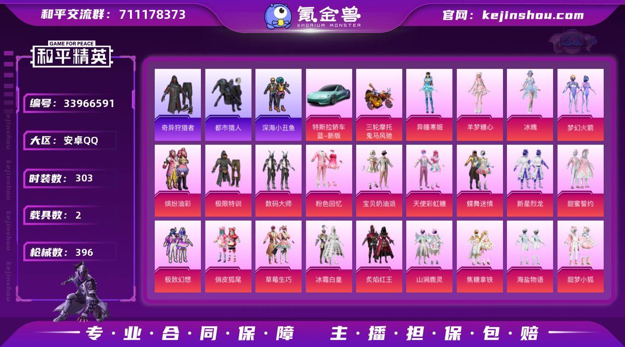 YZJ17299-可二次 安卓Q-5稀有2载具40粉装15特效枪38热门303套装396枪皮【公主少萝衣柜素材女号 91级收藏家 满级恋语M4 满级AUG彼岸 新火箭少女 都市 花仙子 黑魔仙严莉莉 猪妹 小号 女娲 美琪美雪 奶龙 巧克力两姐妹 莫吉托 第五 草莓 烟云 羊梦 呆萌 妙趣 冰川 寒光 狐尾 鹿灵 深海小丑鱼 小丑鱼 兔兔白日梦 糯粉咩咩 美羊羊 银尘 白兰地 猪猪鞋 小黄鸭 东方飞龙 艾伦沃克 红眼罩 浪漫天命 满级AK光华 满级G3洛天依 满级UMP相思残雪 满级火箭丝噶 】 146537热力值 19印记 历史绝世王牌20星 【5稀有】 奇异狩猎者 AKM-百万伏特 SCAR-L-粉色回忆 都市猎人 浪漫天命 【2载具】 特斯拉R水滴蓝 鬼马风驰 【40粉装】 冰魄 梦幻火箭 蝶舞迷情 严莉莉 美琪 美雪 萨利娅 女娲灵识 暖暖奶龙 宝贝奶油派 天使彩虹糖 异瞳寒姬 烟云彩露 炫光之旅 羊梦糖心 呆萌星弥 妙趣可丽 缤纷油彩 莲影清波 仲夏莫吉托 粉色回忆 数码大师 极限特训 第五大道 新星烈龙 甜蜜誓约 极致幻想 冰川幽秘 草莓生巧 俏皮狐尾 冰霜白皇 炙焰红王 霞光圣骑 甜梦小狐 彩虹甜喵 冰川红玫 海盐物语 焦糖拿铁 山涧鹿灵 寒光使者 【15特效枪】 SCAR-L-梦幻火箭 (7级) M416-心之恋语 (7级) Kar98K-圣域龙灵 (3级) Kar...
