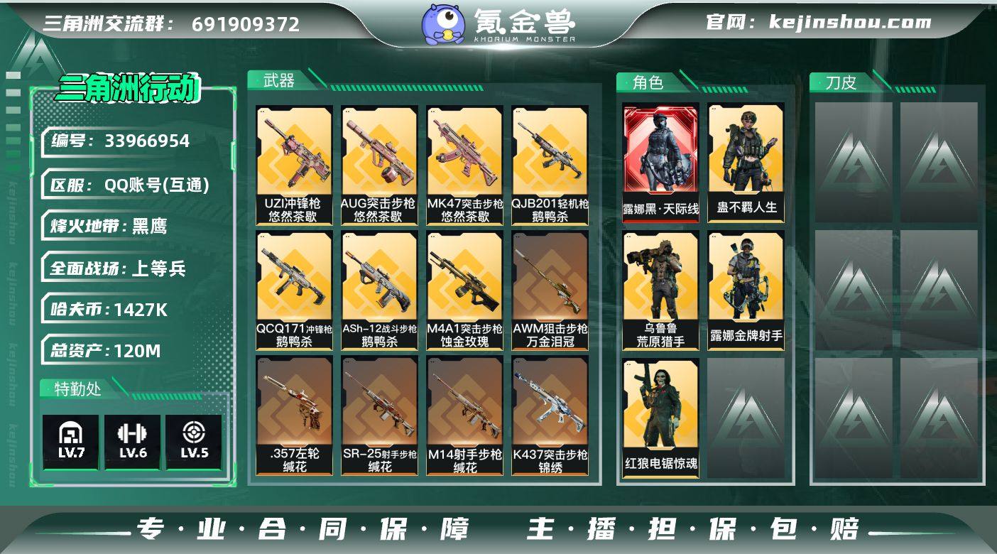 【PTSJZ4525】总资产120M/哈夫币142万/传说近战数1/传说枪皮数27/战场等级50/行动等级60/安全箱等时效性道具以游戏内数据为准,详情请看图/露娜-黑·天际线/红狼-电锯惊魂/露娜-金牌射手(S7)/乌鲁鲁-荒原猎手/蛊-不羁人生/近战-处刑者2级/近战-黑鹰/M4A1突击步枪-蚀金玫瑰/M4A1突击步枪-阿米娅/ASh-12战斗步枪-鹅鸭杀/AUG突击步枪-悠然茶歇/SG552突击步枪-运动员/SCAR-H战斗步枪-水墨云图/SCAR-H战斗步枪-启航/G3战斗步枪-骑士/CAR-15突击步枪-阿米娅/腾龙突击步枪-捞点薯条/K437突击步枪-锦绣/KC17突击步枪-电锯惊魂/MK47突击步枪-悠然茶歇/UZI冲锋枪-悠然茶歇/勇士冲锋枪-能天使-午夜邮差/QCQ171冲锋枪-鹅鸭杀/QJB201轻机枪-鹅鸭杀/M14射手步枪-蛮荒/M14射手步枪-缄花/SR-25射手步枪-水墨云图/SR-25射手步枪-缄花/R93狙击步枪-维什戴尔/AWM狙击步枪-捞点薯条/AWM狙击步枪-万金泪冠/.357左轮-缄花/93R-捞点薯条/复合弓-黑-天际线/P90冲锋枪-天命(典藏)/M4A1突击步枪-竞技风/AKM突击步枪-林中猎手/QBZ95-1突击步枪-曙光/ASh-12战斗步枪-刀锋/K416突击步枪-腊梅/K416突击步枪-阿萨拉特攻/AUG突击步枪-蝮蛇/AUG突击步枪-致命奢华/M7战斗步枪-百步穿杨/SG552突击步枪-深海恐惧/SG5...