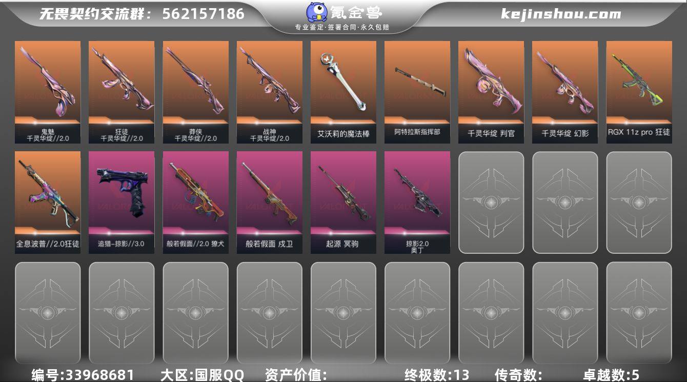 【套装】:千灵华绽//2.0套装 【英雄】:幻棱,炼狱,维斯,暮蝶,壹决,铁臂,捷风,雷兹,幽影,不死鸟,贤者,猎枭,蝰蛇,零,芮娜,奇乐,尚勃勒,霓虹,斯凯,夜露,K/O,海神,盖可,黑梦,钢锁 【近战武器】:近战武器-蒙太奇 战斧,近战武器-流风回雪,近战武器-黑波之刃,近战武器-艾沃莉的魔法棒,近战武器-阿特拉斯指挥部 甩棍 【狂徒】:狂徒-全息波普//2.0,狂徒-RGX 11z Pro,狂徒-千灵华绽//2.0 【幻影】:幻影-千灵华绽,幻影-蒙太奇 【戍卫】:戍卫-般若假面 【獠犬】:獠犬-般若假面//2.0 【冥驹】:冥驹-起源 【莽侠】:莽侠-千灵华绽//2.0 【战神】:战神-千灵华绽//2.0,战神-蒙太奇 【奥丁】:奥丁-掠影//2.0 【判官】:判官-千灵华绽 【骇灵】:骇灵-蒙太奇 【追猎】:追猎-掠影//3.0 【鬼魅】:鬼魅-千灵华绽//2.0 【狂怒】:狂怒-蒙太奇 【卡面】:热舞环节 卡面,红鳞松叶 卡面,无畏契约GO!第一卷:芮娜 卡面,无畏契约GO!第一卷:零 卡面,《双城之战》金克丝 卡面,无畏契约GO!第一卷:贤者 卡面,代号红色 卡面,新兵报到 卡面,V契约 卡面,无畏契约 卡面 【喷漆】:买装还是存钱 喷漆,无畏契约GO!第一卷:贤者 喷漆,胜利属于无畏契约...