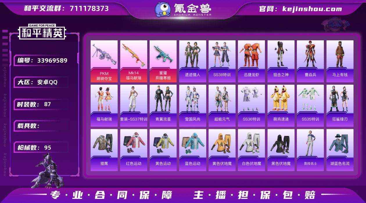 【0载具 3特效枪 0粉装 95枪皮 87套装】套装-小丑鱼 蜜獾-异瞳寒姬,Mk14-福马献瑞,PKM-萌骑夺宝,编号:ZPAWZ20