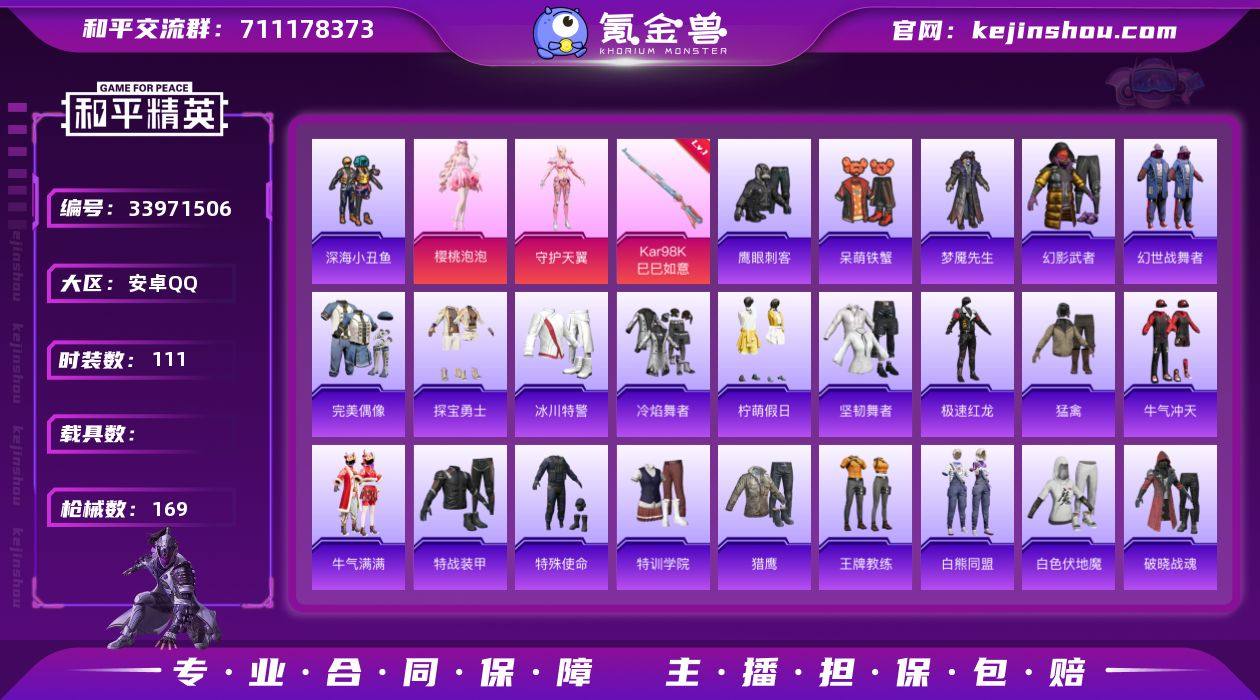 HM6937安卓Q区-2粉装-3特效枪-地铁天赋 深海小丑鱼 蓝螳螂 46742热力值-10王牌印记-141套装-169枪皮【优质套装】: 守护天翼 樱桃泡泡【特效枪等级】:Kar98K-巳巳如意(五级- Kar98K-巳巳如意)【优质武器皮肤】: Kar98K-巳巳如意【稀有武器皮肤】: QBZ-纯真浪花 AWM-纯真浪花 汤姆逊-纯真浪花 DBS-乌木金纹 AA12-G-纯真浪花 平底锅-纯真浪花 突击盾牌-初号机 觉醒Ver. 蜜獾-精灵梦叶罗丽 SCAR-L-海盐豹豹 Kar98K-巳巳如意 野牛-雏菊兔兔 Mk14-冰河战士 平底锅-雏菊兔兔 M762-雏菊兔兔 Mini14-雏菊兔兔 R1895-雏菊兔兔 UZI-冰河战士 M16A4-冰河战士 20-H-乌木金纹 蜜獾-乌木金纹 PKM-啾咪啾咪 M416-红色方程式 M416-蓝色火焰 M416-糯团青竹 M416-绯红前夜 AKM-影袭 AKM-彩虹符号 AKM-龙的传人 AKM-霓虹街区 SCAR-L-红色方程式 SCAR-L-玉兔迎春 M16A4-幻世战舞者 GROZA-影袭 GROZA-田园牧歌 GROZA-懵萌河马 GROZA-彩虹符号 AUG-耀粉歌者 AUG-怪笑疯兔 AUG-甜蜜菠萝 AUG-天降萌叽 QBZ-彩虹符号 M762-绯红前夜 M762-暗夜鎏金 M762-第五大道 M762-天降萌叽 Mk47-乌木金纹 G36C-懵萌河马 AC-VAL-天降萌叽 AC-VAL-乌木金纹 蜜獾-天降萌叽 蜜獾-娇憨猪猪 Kar98K-梦幻火箭 Kar98K-王...