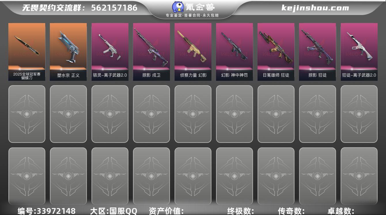 【套装】:2025全球冠军赛套装,回火礼包:掠影套装,掠影//3.0套装,离子武器//2.0套装 【英雄】:幻棱,炼狱,暮蝶,钛狐,壹决,铁臂,捷风,幽影,不死鸟,贤者,猎枭,零,芮娜,奇乐,尚勃勒,霓虹,斯凯,夜露,K/O,盖可,黑梦,钢锁 【近战武器】:近战武器-2025全球冠军赛 蝴蝶刀,近战武器-碎心裂刃,近战武器-影蝶,近战武器-离子武器//2.0 爪刀,近战武器-诡秘蛇影 军刀 【狂徒】:狂徒-2025全球冠军赛,狂徒-掠影,狂徒-日冕雄师,狂徒-离子武器//2.0,狂徒-诡秘蛇影 【幻影】:幻影-末日泡泡,幻影-侦察力量,幻影-神中神罚,幻影-掠影//2.0,幻影-末日之翼 【戍卫】:戍卫-掠影,戍卫-折光棱晶 【飞将】:飞将-末日之翼 【莽侠】:莽侠-诡秘蛇影 【战神】:战神-离子武器//2.0 【奥丁】:奥丁-掠影//2.0,奥丁-末日之翼 【判官】:判官-诡秘蛇影 【骇灵】:骇灵-离子武器//2.0,骇灵-无限竞技 【蜂刺】:蜂刺-折光棱晶 【追猎】:追猎-掠影//3.0 【标配】:标配-折光棱晶 【VCT手枪】:标配-VCT25 x EDG 【正义】:正义-塑水宗 【鬼魅】:鬼魅-诡秘蛇影,鬼魅-星云暗涌 【狂怒】:狂怒-离子武器//2.0 【短炮】:短炮-末日之翼 【卡面】:南瓜盛典 卡面,Clutc...