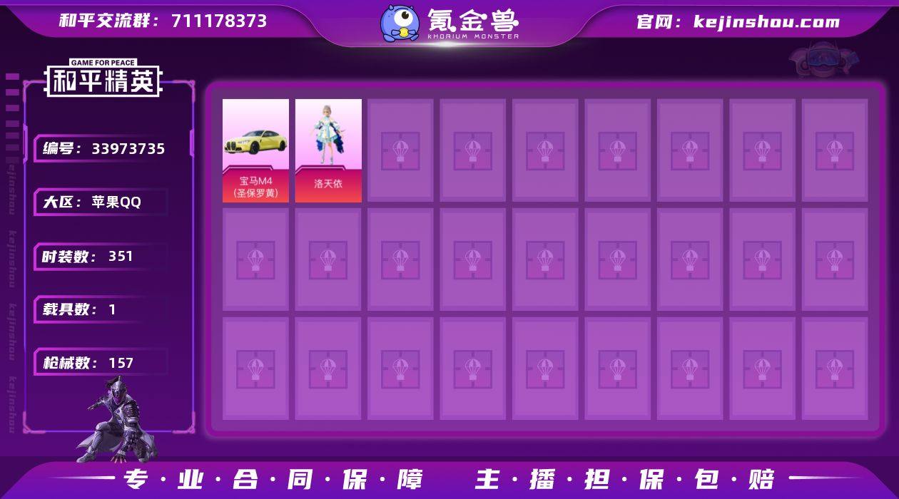 7粉装 6特效枪 1载具 12印记 可二次 可修改实名