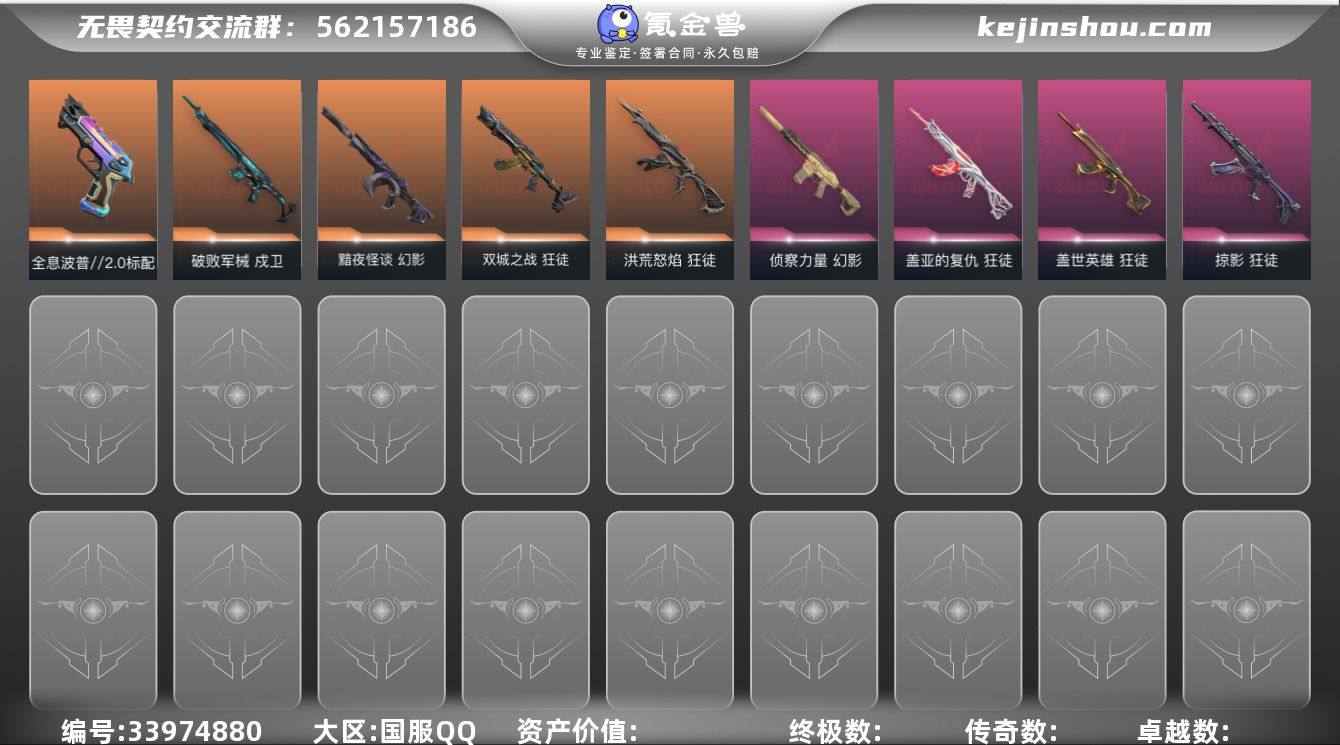 【wwxb1047】LV等级261/皮肤总价值35160/段位铂金/总皮肤数量44/刀皮数量6/枪皮数量38/套装数量1/具体详情请看图/VCT 2026 赛季套装/幻棱/炼狱/维斯/暮蝶/钛狐/壹决/铁臂/捷风/雷兹/幽影/不死鸟/贤者/猎枭/蝰蛇/零/芮娜/奇乐/尚勃勒/霓虹/斯凯/夜露/星礈/K/O/海神/盖可/黑梦/钢锁/近战武器-VCT 2026 篆刀/近战武器-5周年公测重制版苍龙之刃/近战武器-艾沃莉的魔法棒/近战武器-堕天遗武仪式匕首/近战武器-盖亚之愠/近战武器-诡秘蛇影军刀/狂徒-洪荒怒焰/狂徒-全息波普2.0/狂徒-双城之战/狂徒-掠影/狂徒-盖世英雄/狂徒-盖亚的复仇/狂徒-魄月玄兔/狂徒-诡秘蛇影/幻影-黯夜怪谈/幻影-侦察力量/幻影-末日之翼/戍卫-破败军械/戍卫-折光棱晶/飞将-末日之翼/莽侠-诡秘蛇影/奥丁-末日之翼/判官-诡秘蛇影/骇灵-无限竞技/蜂刺-折光棱晶/标配-全息波普//2.0/标配-超能偶像/标配-最终庇护/标配-折光棱晶/日冕雄师-正义/正义-超限闪存/正义-纳米打击/天界神兵-鬼魅/掠影//2.0-鬼魅/鬼魅-流星兵团/鬼魅-诡秘蛇影/鬼魅-星云暗涌/狂怒-蒙太奇/短炮-末日之翼/终章:激斗汉堡 卡面/进入射程 卡面/《双城之战》拥抱 卡面/精灵大战 卡面/欢迎来到底城 卡面/南瓜盛典 卡面/VCT CN首冠 卡面/修车达人...