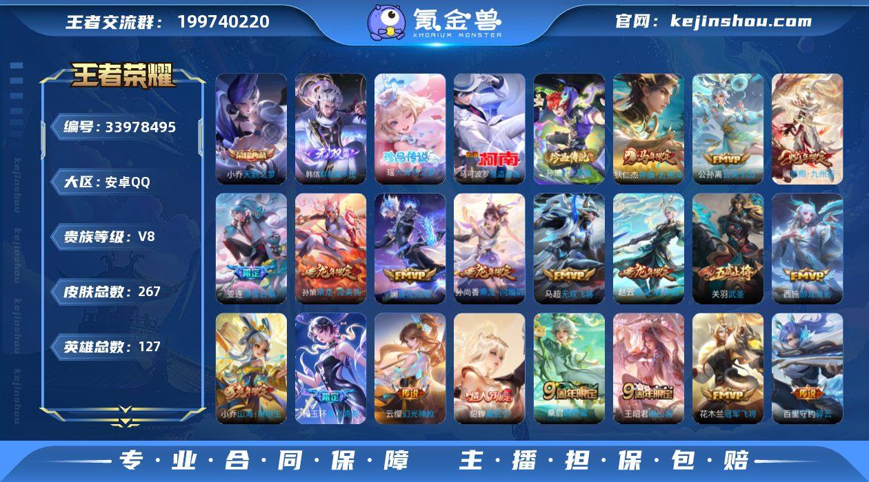 贵族8-贵族积分63078-267皮1典藏23传说1无双3珍品传说 安卓手Q442区267皮1典藏23传说1无双3珍品传说V8 营地ID1764690027永恒钻石II【珍品传说皮肤】:大耳狗之梦,时之奇旅,怪盗基德【无双皮肤】:群星魔术团【荣耀典藏】:天鹅之梦【优质限定皮肤】:至美·乘鲤谣,山海·琳琅生,无双飞将,武圣【传说皮肤】:神骥·赴朔漠,冠军飞将,逐花归海,云诺千山,星之鸣奏,幻光神枪,愿照·九州拓,启明星使,山海·琳琅生,鸣野蒿,映山客,音你心动,无双飞将,游龙清影,武圣,落雪白狼,曦玄引,乘龙·铭钟鼎,乘龙·淬吴钩,乘龙·问璇玑,追逃游戏,电玩·雷克斯,碎云【史诗皮肤】:灵蛊蚀心,偶像歌手,幽灵船长,百晓客,德古拉伯爵,千年之狐,光弋星穹,舞动绿茵,巫礼祀神,江河有灵,乘风破浪,狂想玩偶喵,荣光圣徽,逐浪之夏,龙之律动,鸭鸭历险记,雪豹·霜爪,特工魅影,茶境仙,青蛇,器灵·浮梦炉,鬼剑武藏,猫狗日记,月团寄思,百相守梦,至美·乘鲤谣,蔷薇恋人,星夜王子,陌上桑,黄金分割率,银河之约,破空之剑,绅士熊喵,心灵战警,龙骑士,乱世虎臣,顽岩魄,夏日便利店,末日机甲,埋骨钱,曙光守护者,群星魔术团,奇遇星旅,蔬乡物语,节奏热浪,百里守约真我赫兹,浮梦罗烟,燃音魔法,如梦令,如梦令,乘龙·聚宝船,猫狗日记,乘龙·忆丹...
