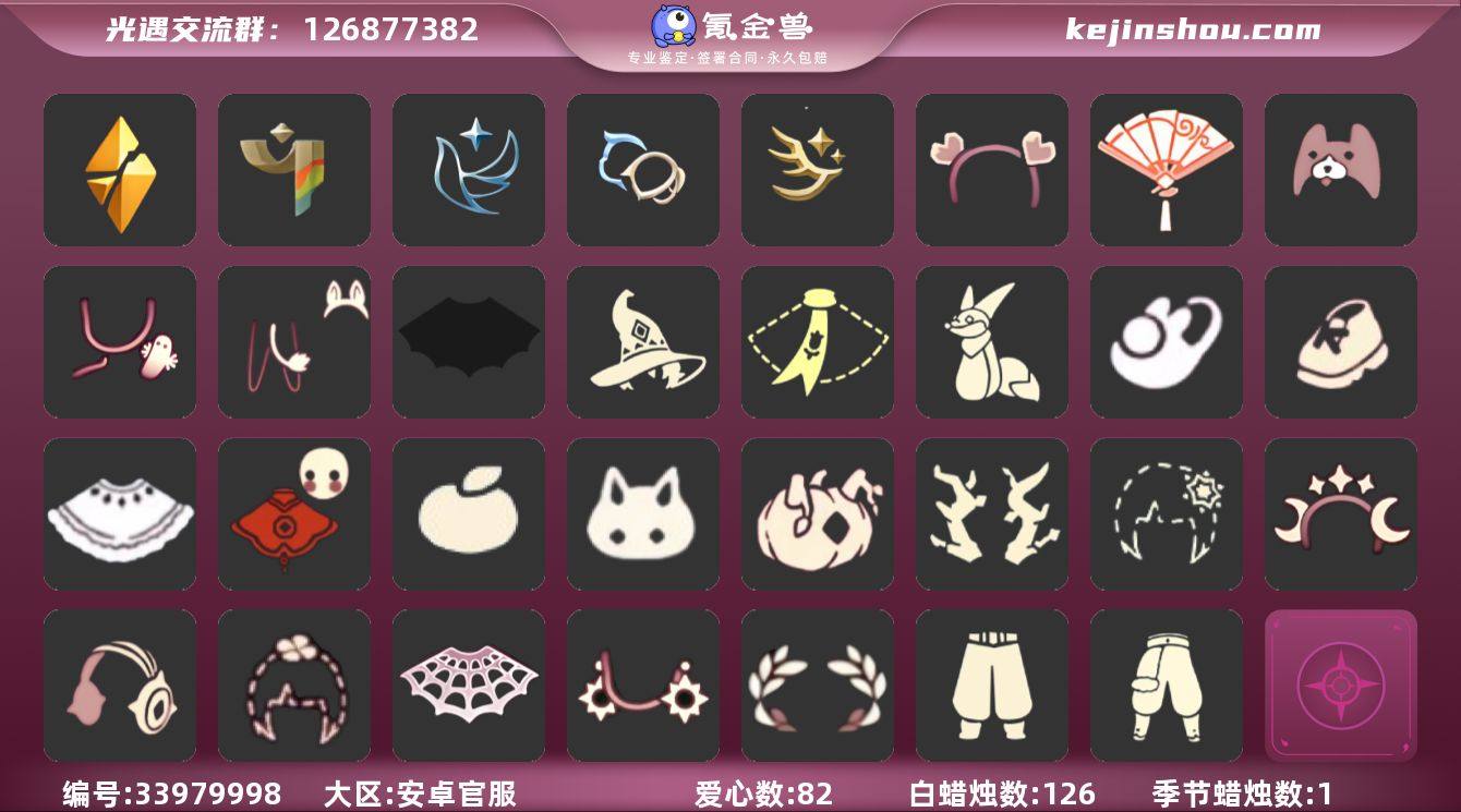 【A1226】区服:国服安卓官服,登入方式:手机【7季卡】巫师帽跑鞋犄角福娃蝙蝠斗王子围巾蛛丝斗篷正太头虚荣发型,蜡烛数量:126,爱心:82,当前身高1.924,最高身高1.197,最矮身高13.197,已经毕业地图:霞谷,暮土,已经毕业季节:迁徒季,双星季,青鸟季,彩染季,破晓季,稀有礼包:玉兔拖鞋,跃动跑鞋,星月头冠,彩虹耳饰,彩虹耳机,金鳞耳坠,日光耳环,巫术犄角,树精肩饰,姆明饰品套装,巫师帽,南瓜头,雪花发卡,玉兔,大桔大利,四叶草头饰,心心相印头饰,小狗周年头饰,锦标赛桂冠,小王子围巾,新春福娃,蝙蝠斗篷,白雪斗篷,蛛丝斗篷,献瑞折扇礼包,狐狸背包,青衫落拓礼包,绿绒绒卷耳头饰,粽子头饰,小黄鸭头饰,蝴蝶与花,活力海牛套装,热门物品:正太头,樱花头,猫猫头,武士裤,花环头饰,宴会围巾,虚荣发型,红耳机,红金斗篷,白金斗篷,白鸟斗篷,吉他,雨伞