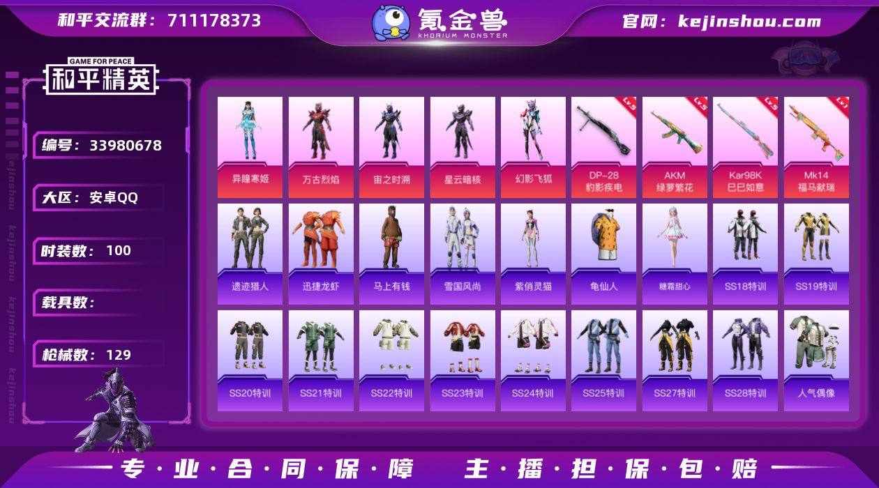 【满地铁天赋】YXc30793-【可二次】【因赛季更新游戏段付以上号为准!】 安卓Q-5粉装4特效枪3热门100套装129枪皮 1印记 历史传奇王牌11星 【5粉装】 万古烈焰 异瞳寒姬 宙之时溯 星云暗核 幻影飞狐 【4特效枪】 AKM-绿萝繁花 (5级) Kar98K-巳巳如意 (5级) DP-28-豹影疾电 (5级) Mk14-福马献瑞 (1级) 【3热门】 龟仙人 破蛋小黄鸡 极速红龙 【2飞行器】 千面幻镜飞行器 天之羽翼飞行器 【1背包】 梦幻火箭背包
