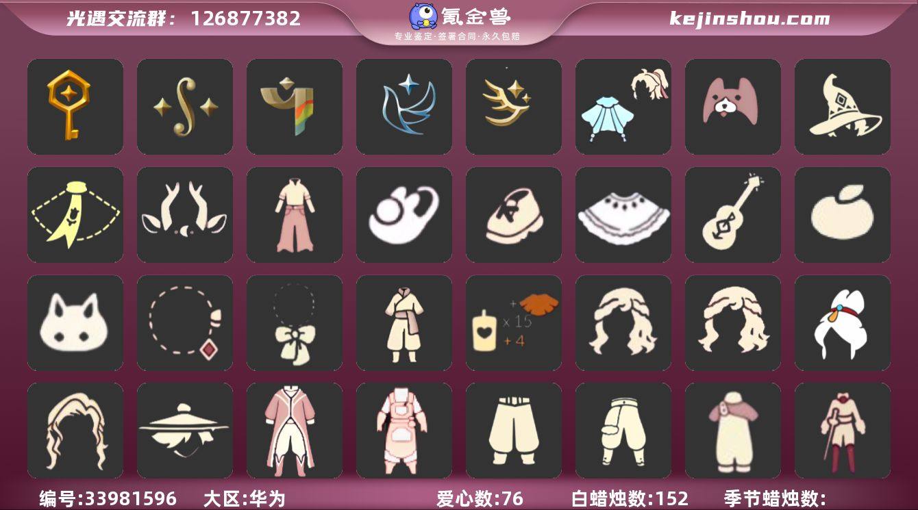 账号类型: 手机账号 季节已毕业: 筑巢季,二重奏季,彩染季,青鸟季,迁徙季 完成地图: 晨岛,雨林,霞谷 礼包: 巫师,围巾,九色鹿角,牛仔裤,兔子鞋,运动鞋,白绒金,吉他,橘子,兔子,彩虹耳钉,蝴蝶结,暗彩装扮,创始人,海蓝波浪发型,小狗周年发饰,青衫落拓礼包 裤子: 武士裤,背带裤,搓澡巾,击剑裤,飞天裤,筑巢季·裤子,青鸟尊贵蓬头裤子 面具: 九色鹿面具,辉光羚羊面具 面饰: 红耳机,青鸟毕业面饰 发型: 若笠,虚荣,飞天盘发,海蓝波浪发型 头饰: 平顶帽 斗篷: 黄色蓑衣,海洋斗,绿芽,彩染围巾斗篷,青鸟毕业斗篷 配饰: 雨伞,筑巢季·小手办,高音钢琴,二重奏挂画 亮点: 【优质装备】:晨岛,雨林,霞谷,若笠(箬笠),武士裤,青鸟尊贵蓬头裤子(蓝色燕尾服),筑巢季·小手办(光之子试衣),高音钢琴(白色高脚钢琴),飞天裤(柔缎花边连)(九色鹿丝带裤),筑巢季,二重奏季,二重奏挂画(合奏挂画),筑巢季·裤子(设计师长袍),辉光羚羊面具,彩染季,飞天盘发(九色鹿丸子头),青鸟季,青鸟毕业面饰(青鸟面饰),青鸟毕业斗篷(青鸟斗篷),红耳机,围巾(小王子斗篷)(小王子围巾),九色鹿角(神鹿祝福头饰)(神鹿祝福礼包),吉他(音韵吉他)(白吉他),暗彩装扮(彩虹武士裤),巫师(巫师帽),牛仔裤(阔腿牛仔),白绒金(白雪斗篷),兔子鞋(兔...