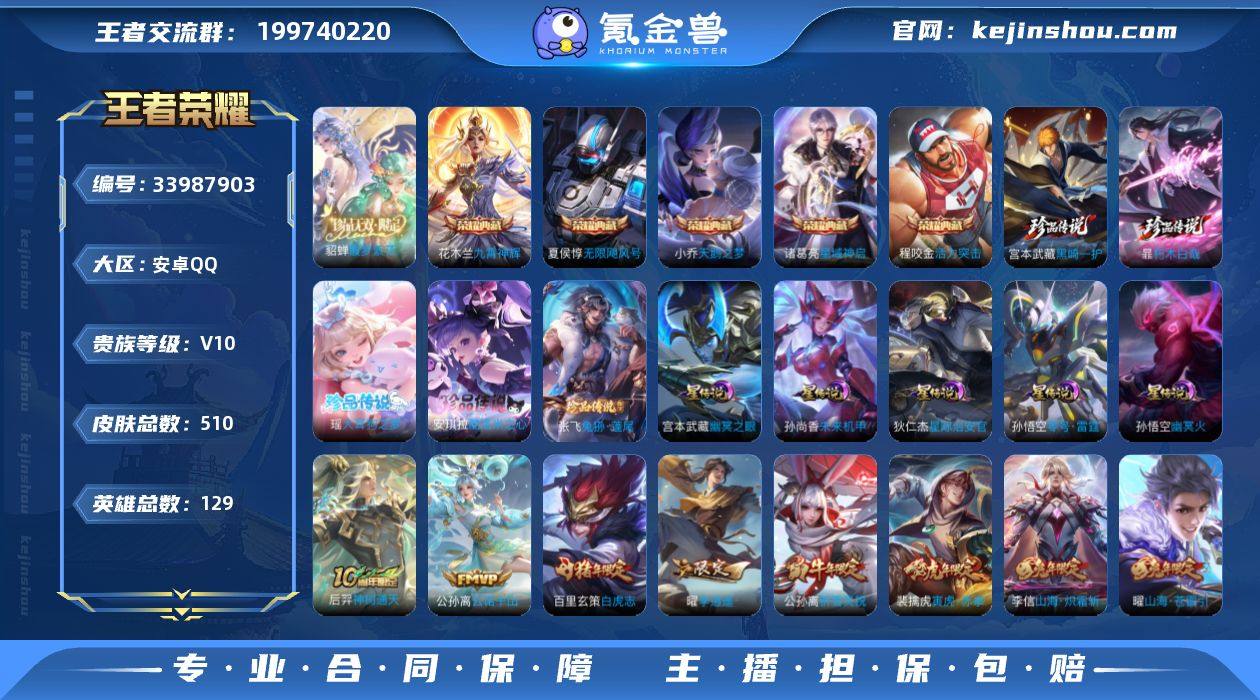 ER12737 安卓QQ V10 510皮 5典藏 5珍品传说 55传说 213限定【4.7w流光积分 貂蝉馥梦繁花 金标夏侯惇 46按键 5天幕】5星元 中路31段 游走25段 全能高手 252幸运值 3445星币 2226英雄碎片 407亲密玫瑰 9改名卡 21印记 2荣耀印记 营地号:1798962980 【珍品传说】兔狲·蓬尾,黑崎一护,朽木白哉,酷洛米之心,大耳狗之梦, 【无 双】馥梦繁花, 【荣耀典藏】九霄神辉,星域神启,天鹅之梦,无限飓风号,活力突击, 【星元皮肤】幽冥之眼,幽冥火,未来机甲,零号雷霆,星际治安官, 【热门限定】白虎志,青龙志,朱雀志,瑞麟志,玄武志,虎魄,李逍遥,冰锋战神,天魔缭乱,白鹤梁神女,如梦令男,异界灵契,零号·赤焰,永曜之星,武陵仙君,时雨天司,御风骁将,祈雪灵祝,奔雷神使,傲雪梅枪,天狼绘梦者,天狼运算者,天狼溯光者,天狼征服者,寅虎·赤拳,寅虎·瑞焰,寅虎·心曲,寅虎·展翼,寅虎·御盾,默契交锋男,默契交锋女,逐梦之光,白晶晶,青春决赛季,淬星耀世,枫霜尽,时之奇旅,时之祈愿男,蜜橘之夏,岱宗,幽恒,太华,飞衡,玄嵩,神奇女侠,冰霜恋舞曲,霸王别姬男,一生所爱,大圣娶亲,暗影游猎,玉兔公主,挚爱花嫁,挚爱之约,狮心王,时之奇旅,神器·万象笔,山海·炽霜斩,山海·苍雷引,齐天大圣,无限倾心男,启明星使,匿光决锋者,百...