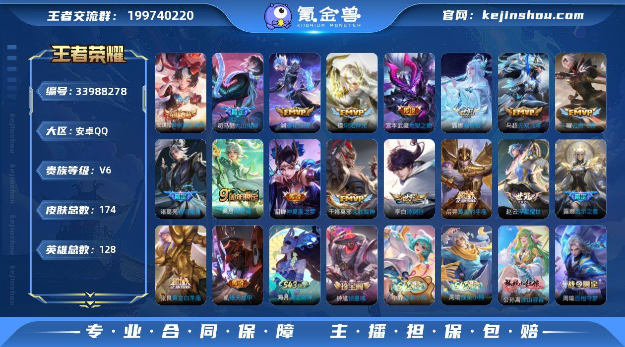 安卓Q-V7-至尊星耀IV段位-128英雄-174皮肤-1典藏皮肤-17传说-47史诗HZ2642710 【英雄全皮】:司马懿全皮 【荣耀典藏】:安琪拉颠倒童话魔镜 【传说皮肤】:司马懿九山相柳,桑启鸣野蒿,澜逐花归海,露娜霜月吟,诸葛亮鹤羽星尊,李白诗剑行,马超无双飞将,露娜启示之音,赵云淬星耀世,铠绛天战甲,镜炽阳神光,曜云鹰飞将,张良黄金白羊座,干将莫邪久胜战神,后羿黄金射手座,貂蝉仲夏夜之梦,宫本武藏地狱之眼 【限定皮肤】:姜子牙天穹之誓,狄仁杰阴阳师,赵云皇家上将,元歌无心,马可波罗暗影游猎,狄仁杰魔术师,项羽海滩派对,露娜启示之音,孙悟空至尊宝,诸葛亮鹤羽星尊,百里玄策原初追逐者,张良古海寻踪,高渐离燃音魔法,妲己灵卜魔法,鬼谷子天穹祈灯,百里玄策超元猎域,沈梦溪龙舞盛年,刘邦剑破天穹,程咬金群星魔术团,周瑜熔金海岸 【赛季限定】:张良古海寻踪,鬼谷子天穹祈灯,刘邦剑破天穹,姜子牙天穹之誓,东皇太一噬灭天穹,太乙真人谧流熔炉,钟馗虚灵犬护,甄姬逆浪荇歌,亚瑟荣光之誓,百里玄策原初追逐者 【战令限定】:马可波罗暗影游猎,高渐离燃音魔法,妲己灵卜魔法,亚连破空之剑,孙悟空神迹守卫,孙膑茶境仙,马超访茗客,刘禅鸭鸭历...
