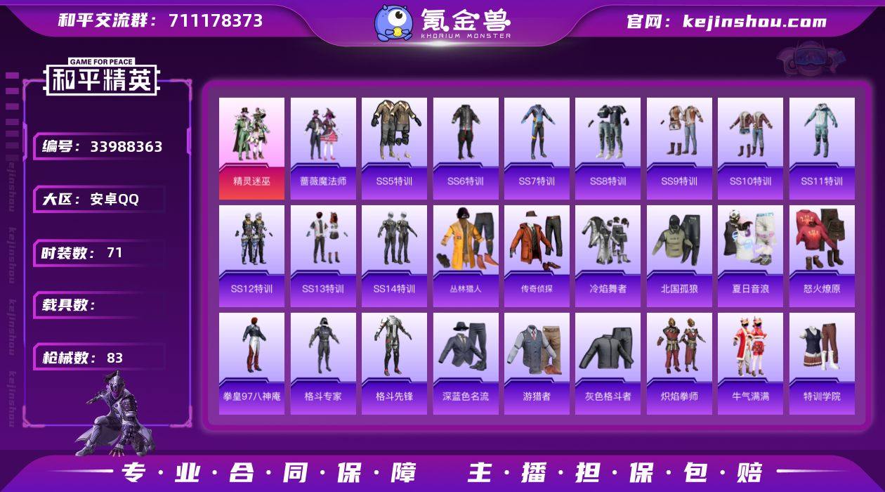 【FK6976】71套装/装备93/战备58/热力值23960/精灵迷巫/飞行器-精灵迷巫/快乐主宰降落伞/精灵迷巫降落伞/星之信仰降落伞/甜蜜誓约降落伞/四圣焕新降落伞/AKM-星之信仰/AKM-灼热熔岩/AKM-玉龙/AKM-破晓战魂/AKM-霓虹街区/M16A4-魔法学院/SCAR-L-炫彩节奏/SCAR-L-红色方程式/M416-神秘黑猫/M416-红色方程式/M416-蓝色火焰/M416-魔法学院/GROZA-生命誓言/GROZA-黑色刀锋/AUG-魔法学院/QBZ-原初圣火/M762-拳皇97/M762-牛气冲天/M762-绯红前夜/UZI-红色方程式/UZI-魔法学院/UMP45-快乐主宰/Vector-彩虹符号/Vector-生命誓言/Vector-黑色刀锋/汤姆逊-勇闯险境/汤姆逊-天降萌叽/Kar98K-勇闯险境/Kar98K-红色方程式/M24-冰封烈焰/AWM-黑色刀锋/SKS-勇闯险境/SKS-夜灯/VSS-黑色刀锋/Mini14-原初圣火/Mini14-炫彩节奏/Mini14-耀粉歌者/Mini14-金鼠迎春/S686-冰封烈焰/S686-生命誓言/S686-魔法学院/S1897-勇闯险境/S1897-星之信仰/S1897-春暖花开/S12K-破晓战魂/S12K-夜灯/M249-四圣焕新/M249-拳皇97/M249-破晓战魂/DP-28-原初圣火/P92-拳皇97/P1911-冰封烈焰/P18C-原初圣火/SS5特训/SS6特训/SS7特训/SS8特训/SS9特训/SS10特训/SS11特训/SS12特训/SS13特训/SS14特训/丛林猎人/传奇侦探/冷...