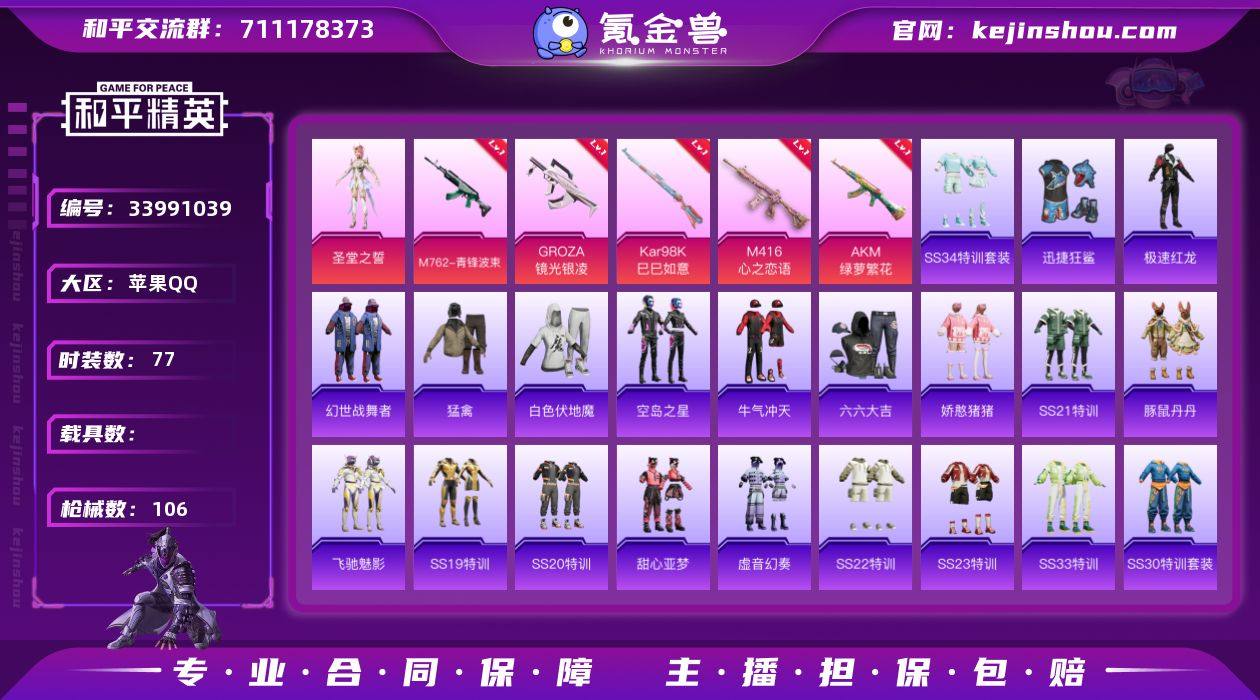 可二次【小熊背包M4满级心之恋语迅捷狂鲨5特效枪1粉装 秒换绑不用等】 苹果Q区-33767热力值-77套装-106枪皮 【1稀有】 萌熊伴侣背包(小熊背包)【1粉装】 圣堂之誓【5特效枪】 M416-心之恋语(7级) AKM-绿萝繁花(5级) M762-青锋波束(5级) Kar98K-巳巳如意(5级) GROZA-镜光银凌(5级)【83热门】 迅捷狂鲨 极速红龙 豚鼠丹丹 白色伏地魔 SS27特训 SS26特训 SS25特训 SS23特训 SS22特训 SCAR-L-玉兔迎春 Mk47-乌木金纹 UZI-娇憨猪猪 UMP45-蓝色火焰 M249-彩虹符号 MG3-幻世战舞者 GROZA-彩虹符号 长空猛禽 虚音幻奏 甜心亚梦 牛气冲天 魅力单车 六六大吉 黑色伏地魔 M762-奇异狩猎者 SS34特训 怀庆长公主 SS16特训 SS17特训 SS19特训 SS20特训 SS21特训 临安公主 SS30特训 青团波波 糖糖葫芦 SS31特训 SS33特训 SS32特训 巳巳如意 棉花软糖 焰鹰斗篷 幽夜迷踪 老实芭蕉 智谋强哥 战术大师 AKM-彩虹符号 M416-糯团青竹 UMP45-海盐豹豹 大砍刀-黑金刀 平底锅-许七安 P18C-百万伏特 撬棍-幻世战舞者 Mini14-炫彩节奏 短管霰弹-竹节火铳 M417-玩趣呆呆 许七安 平底锅-飞行日记 平底锅-光之冒险 MG3-乌木金纹 平底锅-飞驰魅影 破片手榴弹-巳巳如意 平底锅-甜心亚梦 平底锅-娇憨猪猪 DBS...